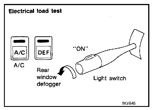 The incident may be electrical load sensitive. Perform diagnosis with all accessories (including A/C, rear window defogger, radio, fog lamps) turned on.