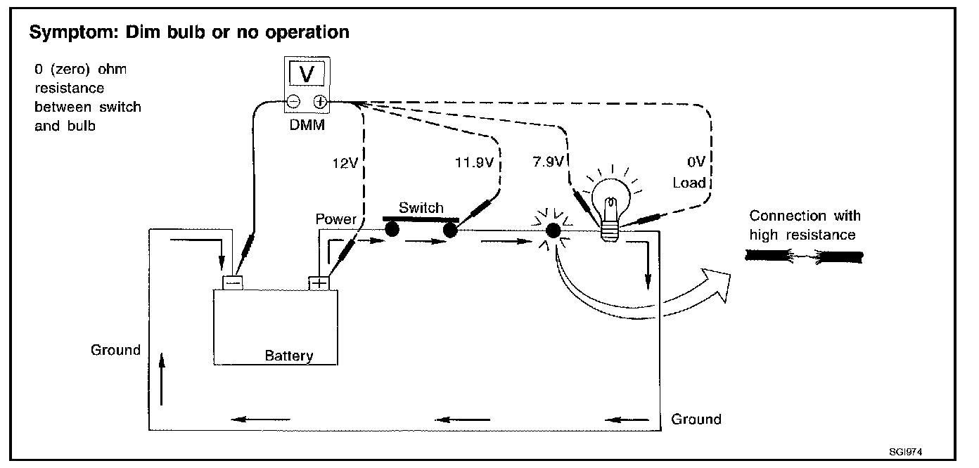 Electronically controlled circuits are very sensitive to proper grounding. A loose or corroded ground can drastically affect an electronically controlled circuit. A poor or corroded ground can easily affect the circuit. Even when the ground connection looks clean, there can be a thin film of rust on the surface.