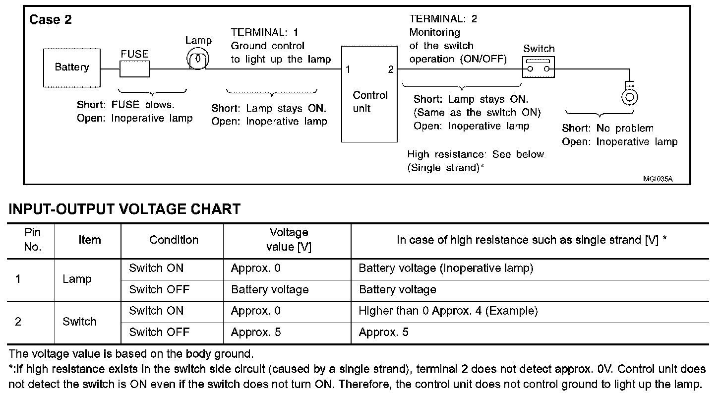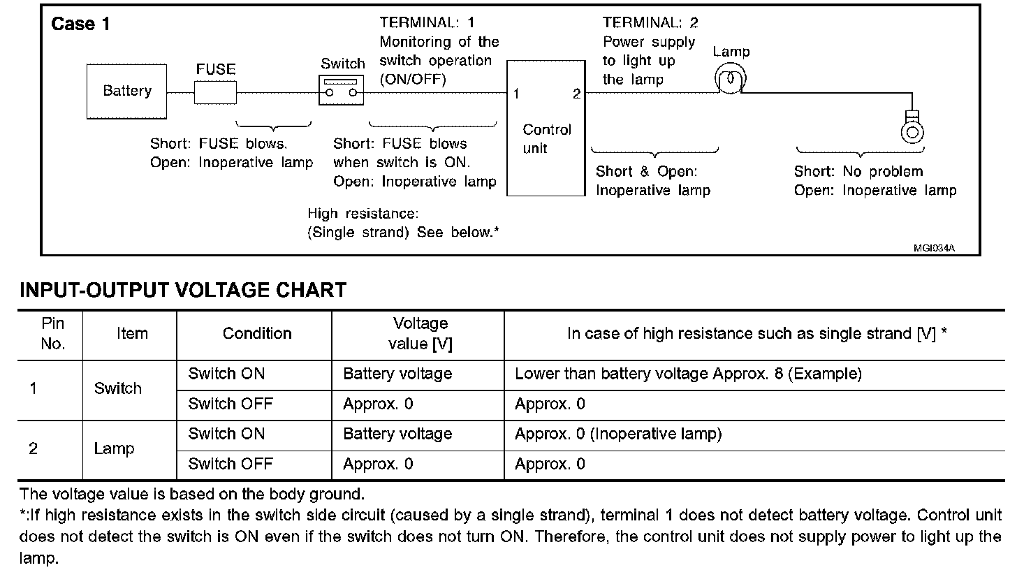 - When using a DMM, be careful not to let test probes get close to each other to prevent the power transistor in the control unit from damaging battery voltage because of short circuiting.