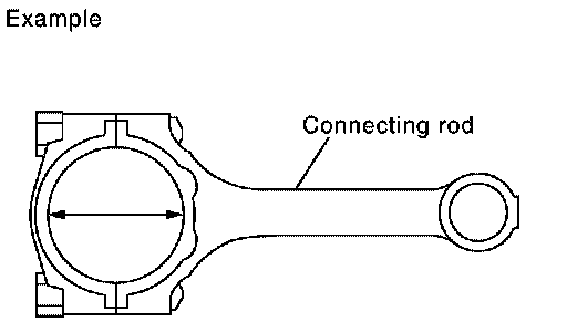 ^ Install the connecting rod cap without the connecting rod bearing installed. After tightening the connecting rod bolt to the specified torque, measure the connecting rod large end inside diameter. Refer to "ASSEMBLY".