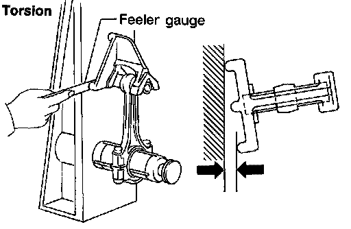 ^ Measure side clearance between the connecting rod and crank shaft arm using suitable tool.