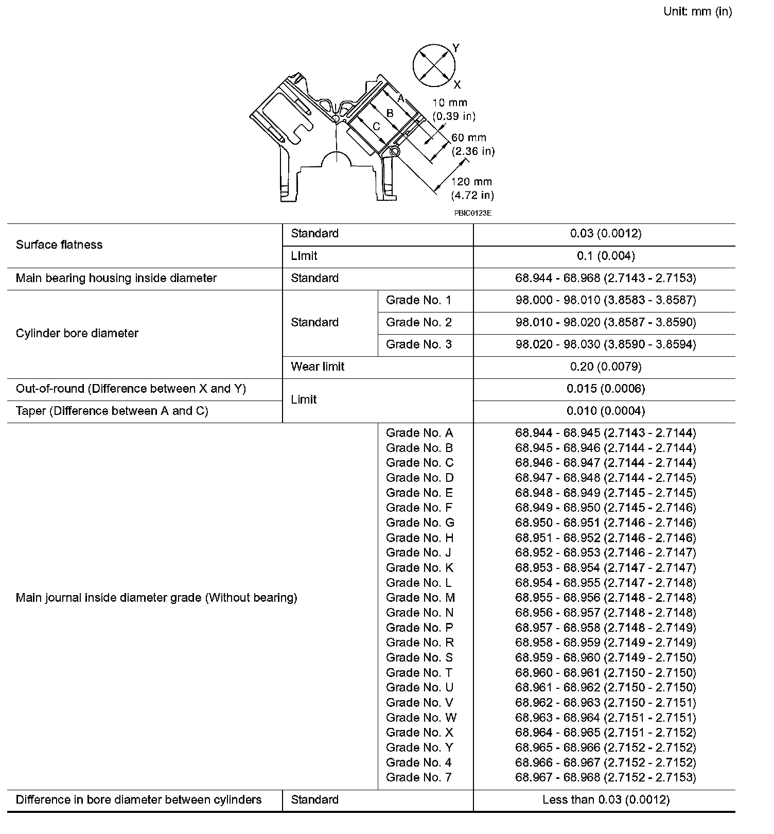 ^ If standard is not met, replace main bearings.