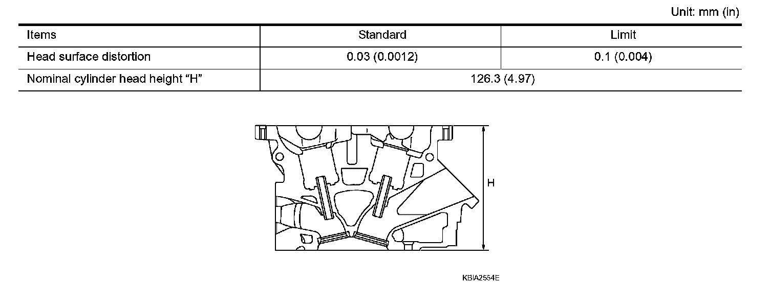 CYLINDER HEAD DISTORTIONMeasure the bottom surface of the cylinder head for distortion in six directions as shown, using suitable tools.