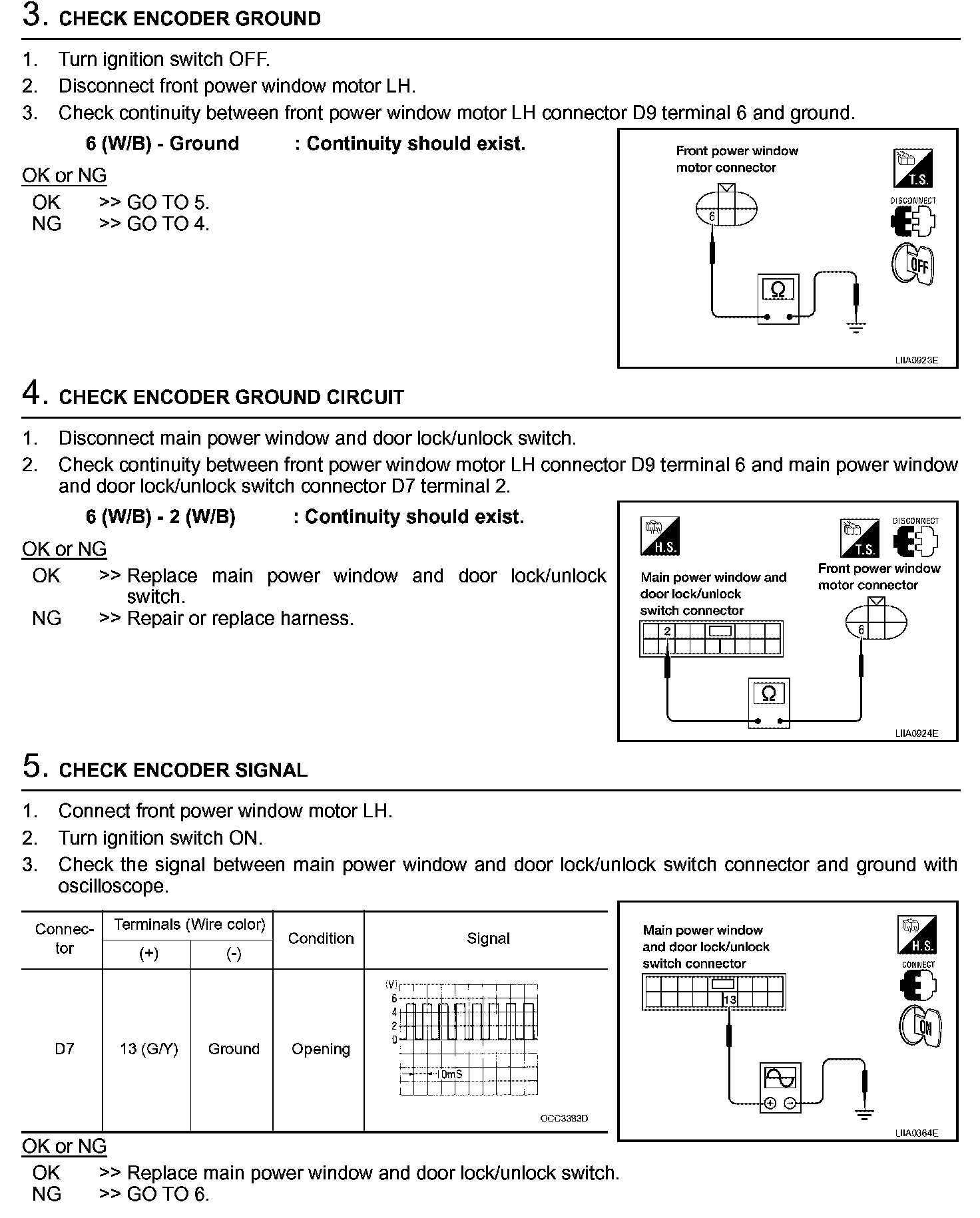 Encoder Circuit Check Front LH (Steps 3 - 5):