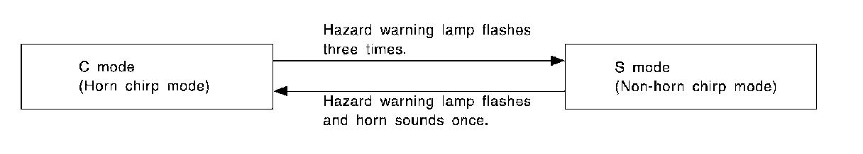 BCM outputs to IPDM E/R for horn reminder signal as DATA LINE (CAN H line and CAN L line). The hazard and horn reminder has C mode (horn chirp mode) and S mode (non-horn chirp mode).