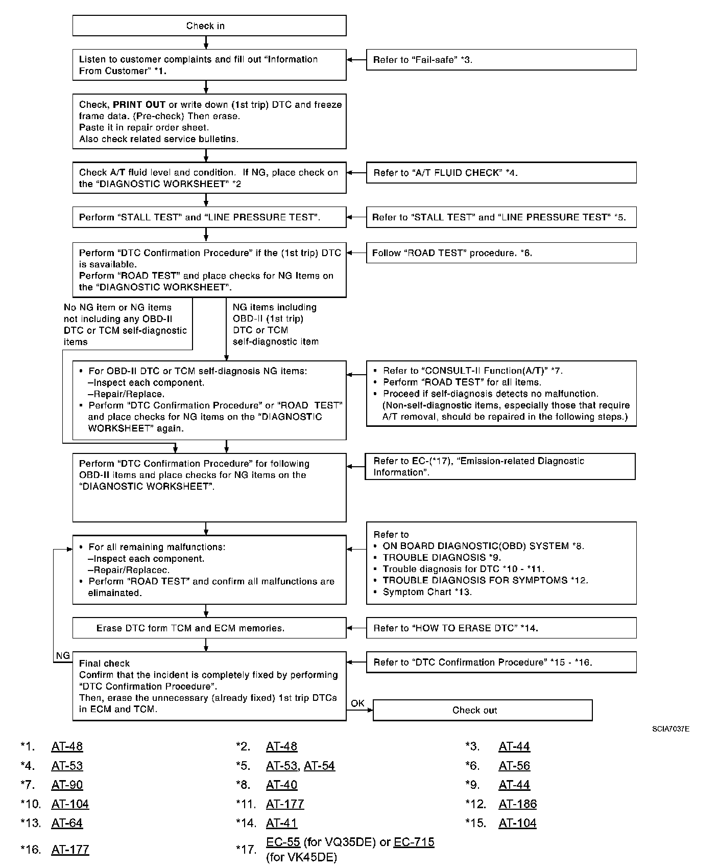 Make good use of the two sheets provided, Information From Customer (Refer to AT-48) and DIAGNOSTIC WORKSHEET (Refer to AT-48), to perform the best troubleshooting possible. Diagnostic Worksheet