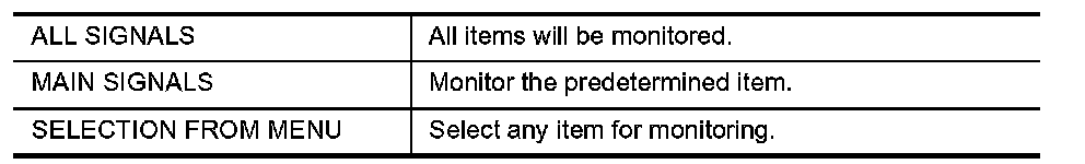 3. Touch the required monitoring item on "SELECTION FROM MENU". In "ALL SIGNALS", all items are monitored. In "MAIN SIGNALS", predetermined items are monitored.
