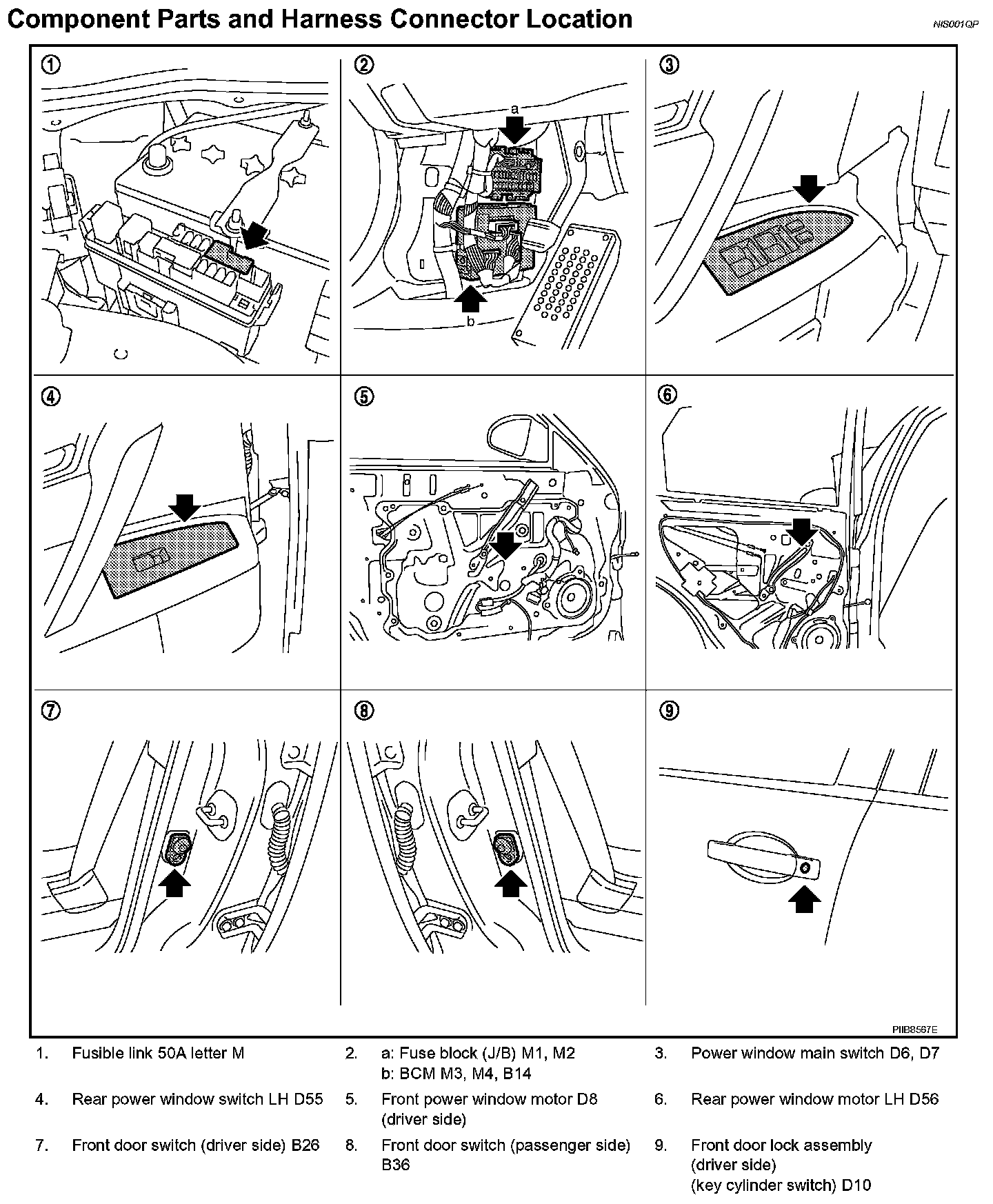 Component Parts And Harness Connector Location: