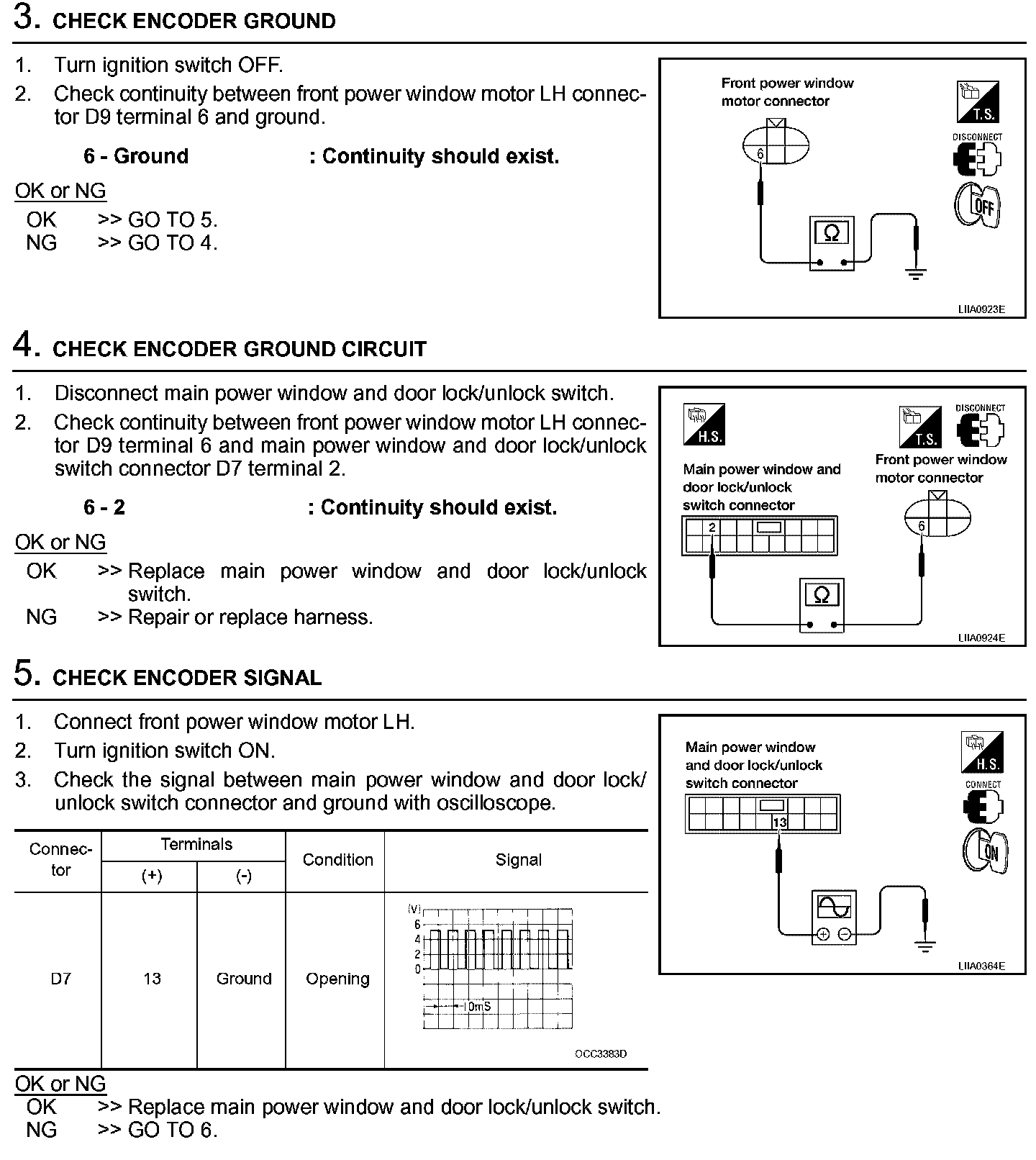 Encoder Circuit Check Front LH (Steps 3 - 5):