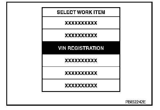3. Select "VIN REGISTRATION" in "WORK SUPPORT" mode.