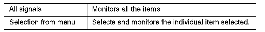 4. When "SELECTION FROM MENU" is selected, touch items to be monitored. When "ALL SIGNALS" is selected, all the items will be monitored.