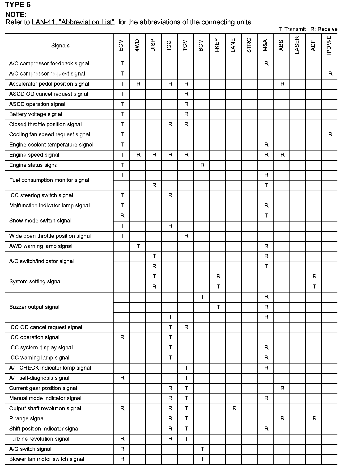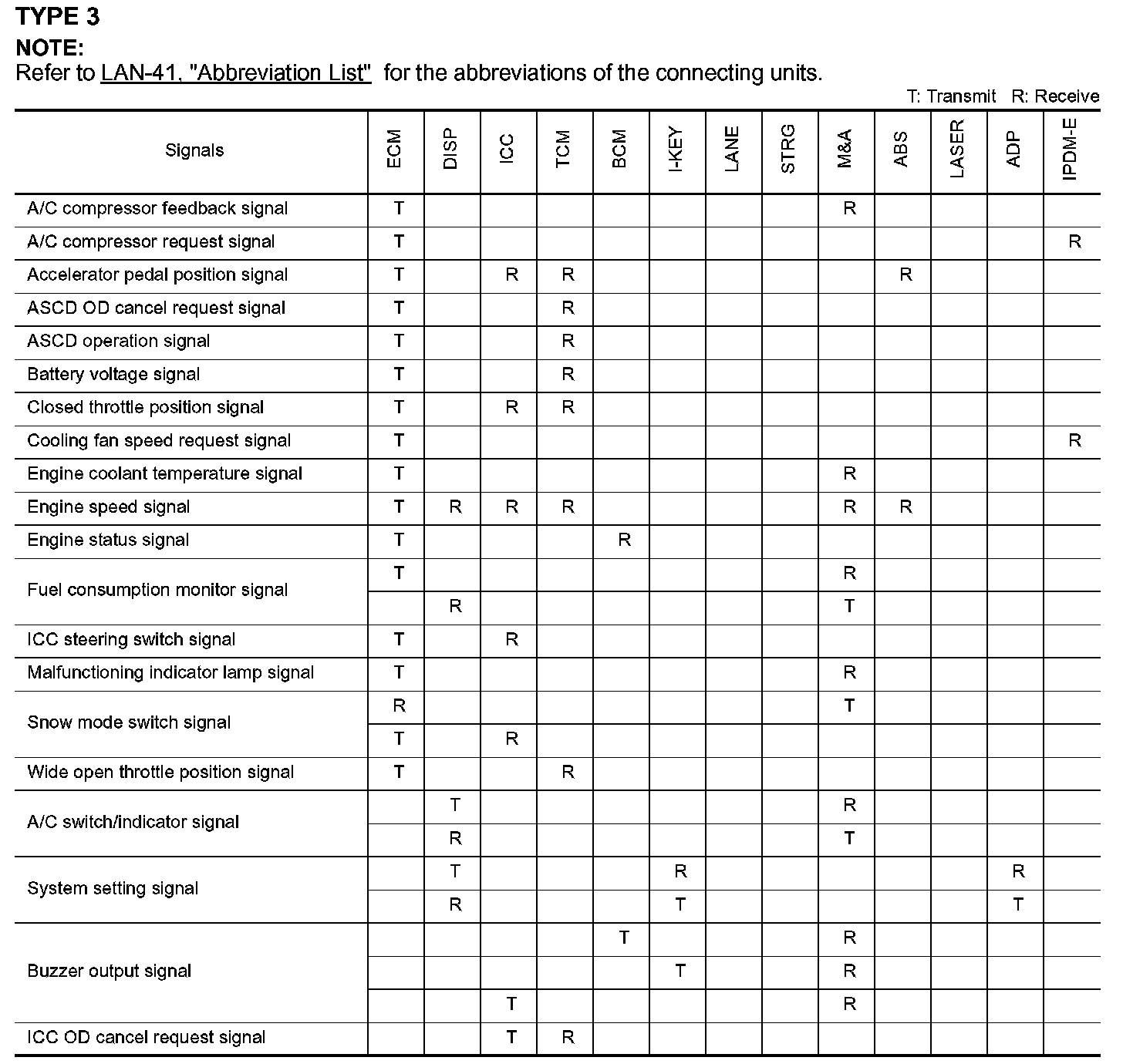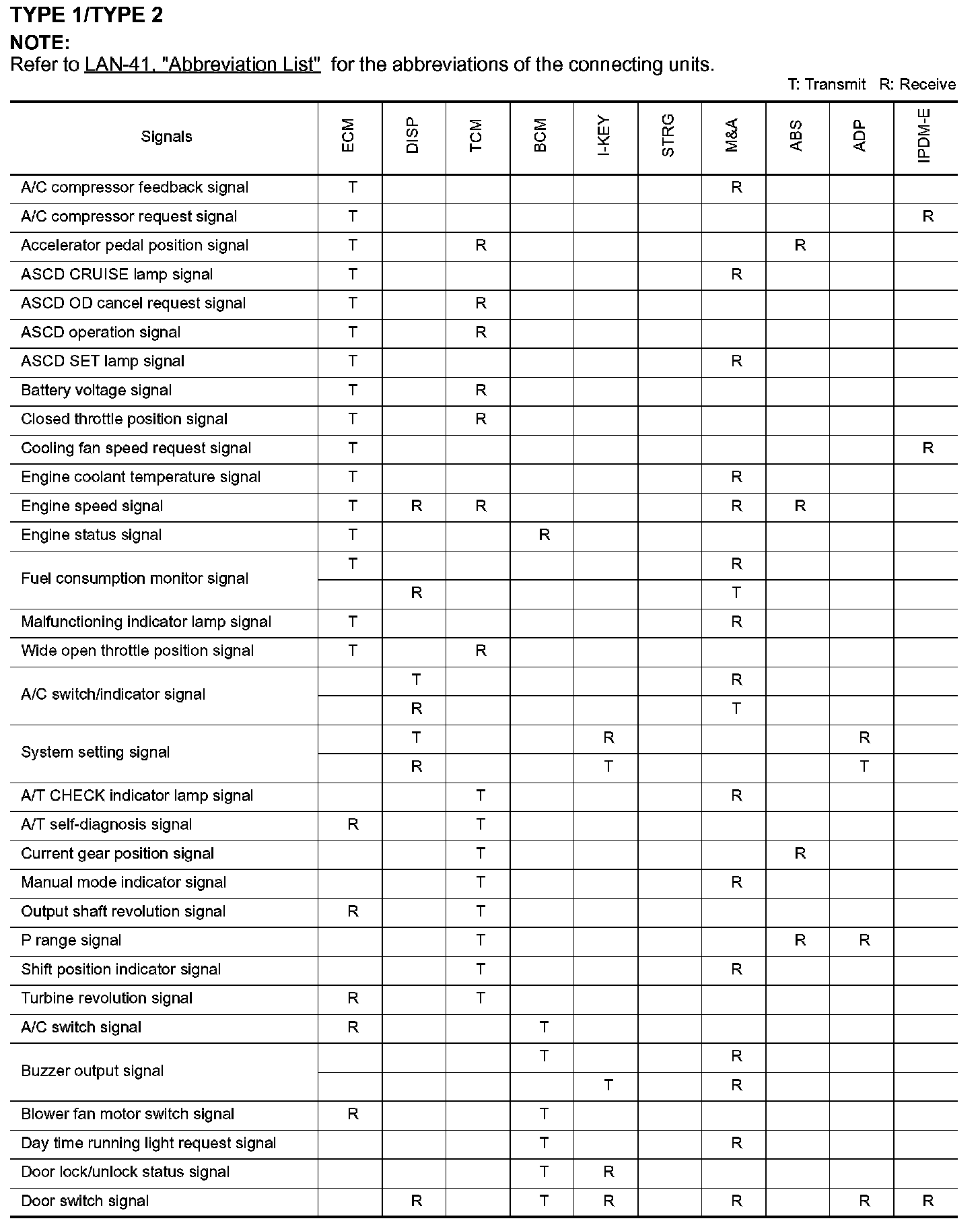 Refer to LAN-15, "How to Use CAN Communication Signal Chart" for how to use CAN communication signal chart.