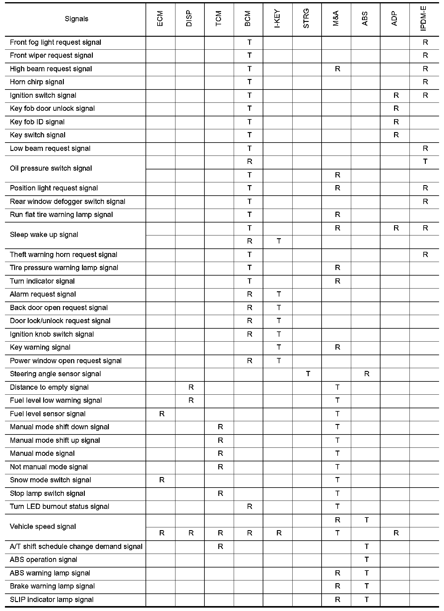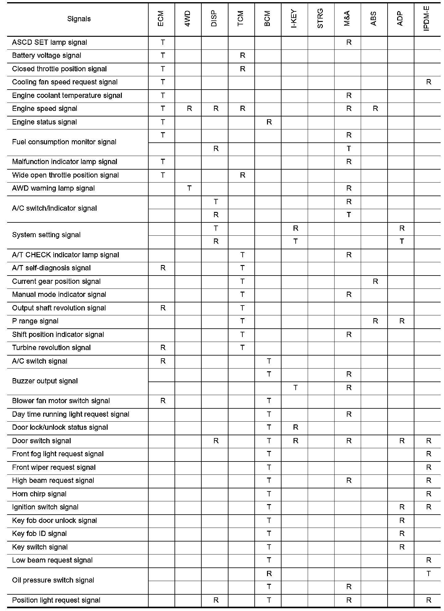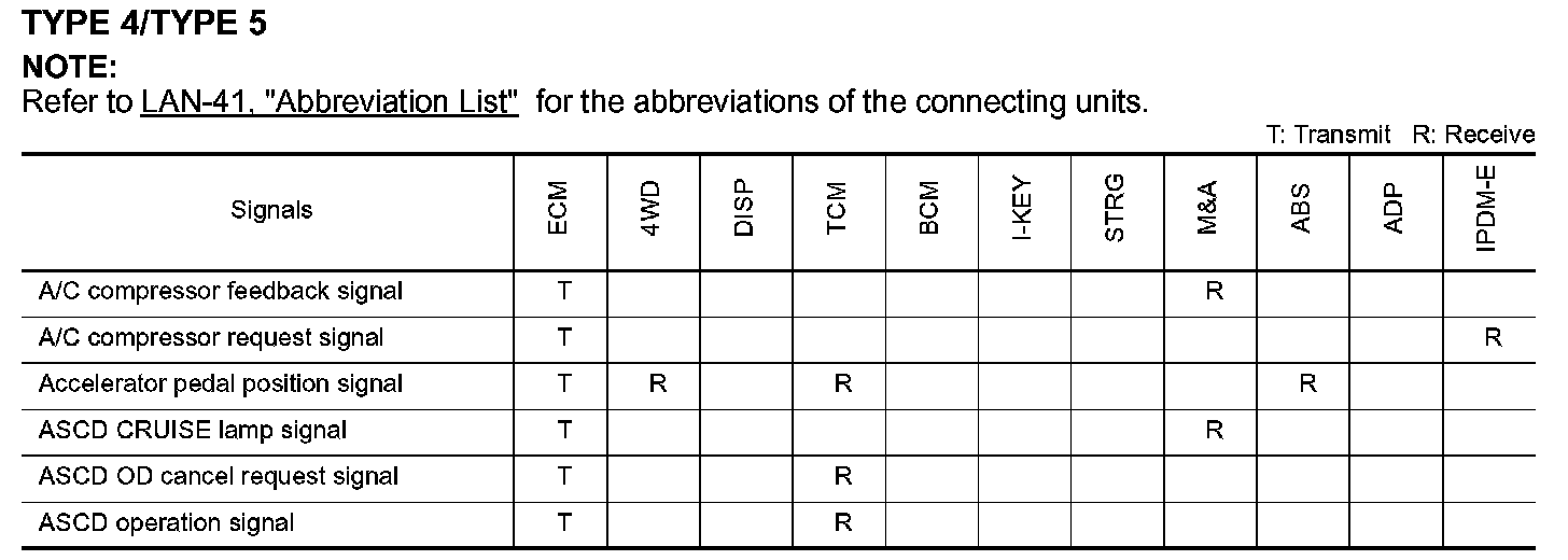 Refer to LAN-15, "How to Use CAN Communication Signal Chart" for how to use CAN communication signal chart.