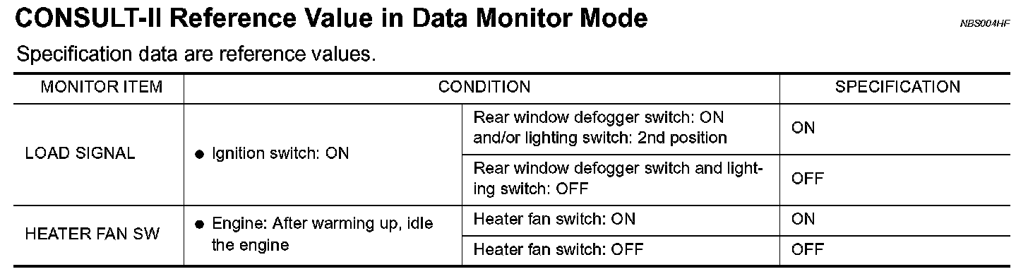 CONSULT-II Reference Value in Data Monitor Mode