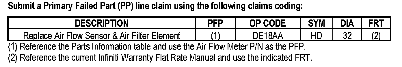 ^ A new Genuine Nissan air filter element must be used for all warranty claims and any other claim for which Nissan pays.