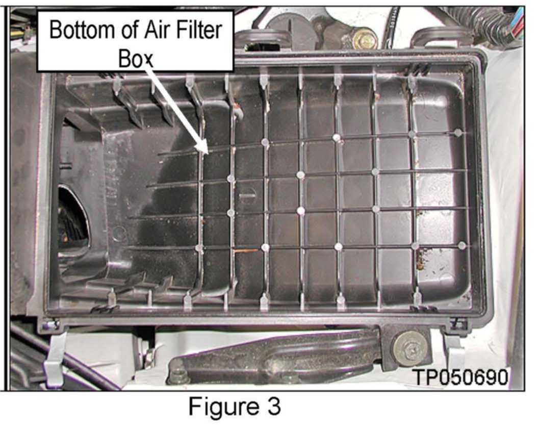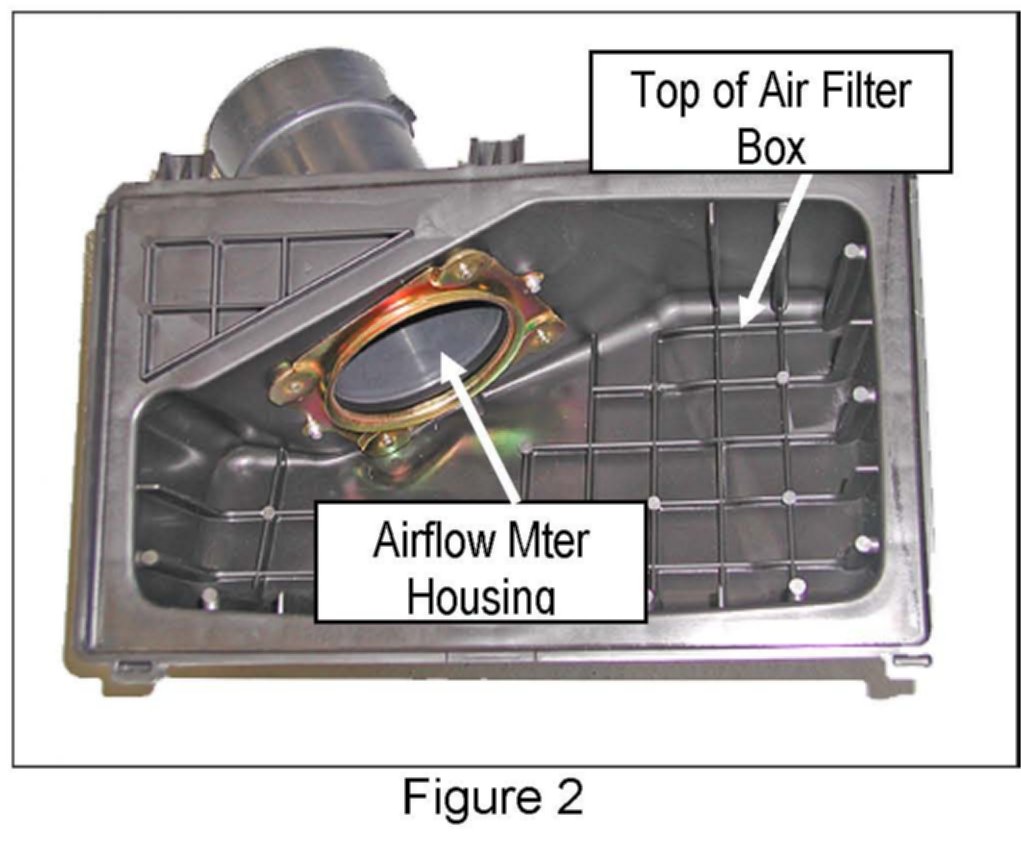^ Use low-pressure compressed air or a shop vacuum to clean out all dust, dirt, and debris from inside both halves of the air filter box and inside of the airflow meter housing (see Figures 2 and 3).
