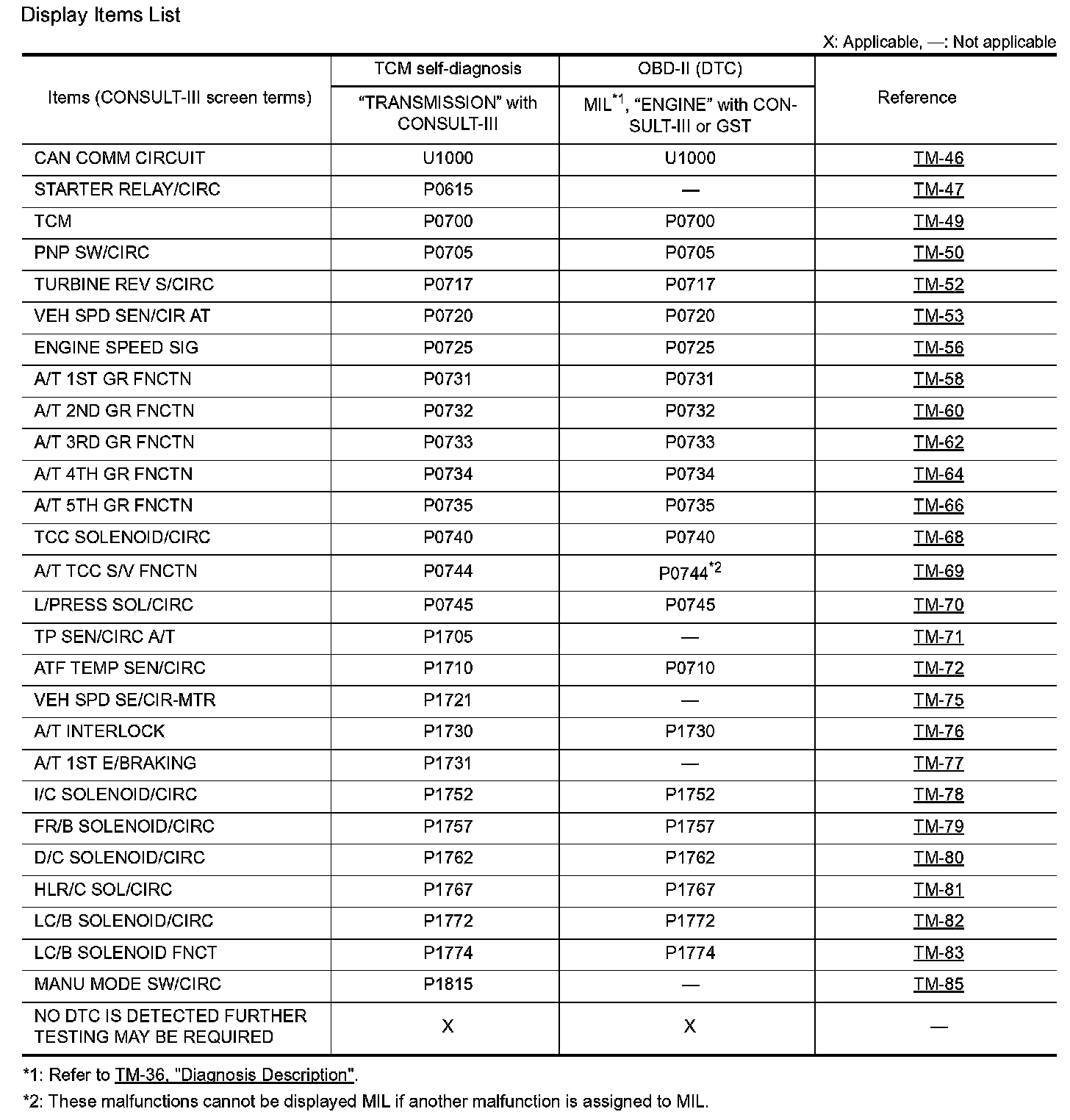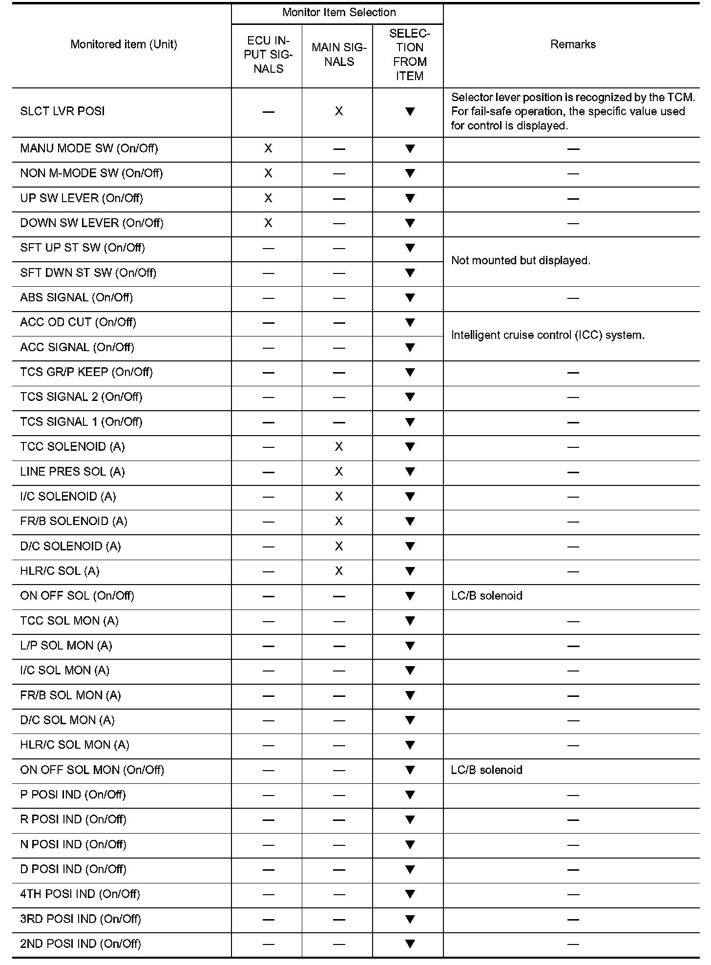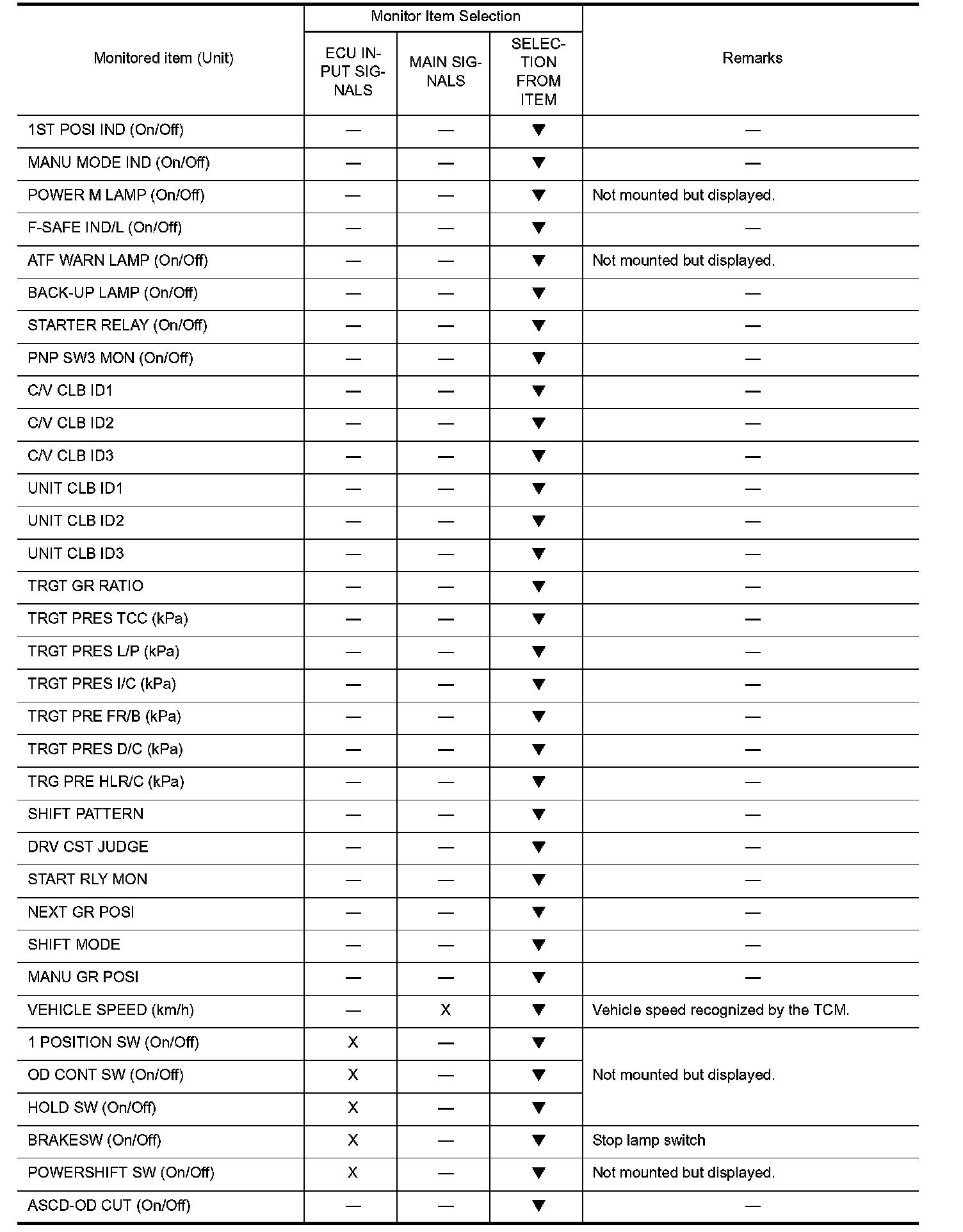 CONSULT-III Function (TRANSMISSIONCONSULT-III APPLICATION ITEMS: