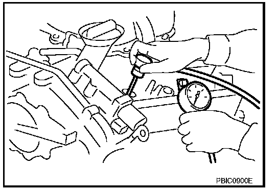 8. With accelerator pedal fully depressed, turn ignition switch to "START" for cranking. When the gauge pointer stabilizes, read the compression pressure and the engine rpm. Perform these steps to check each cylinder.