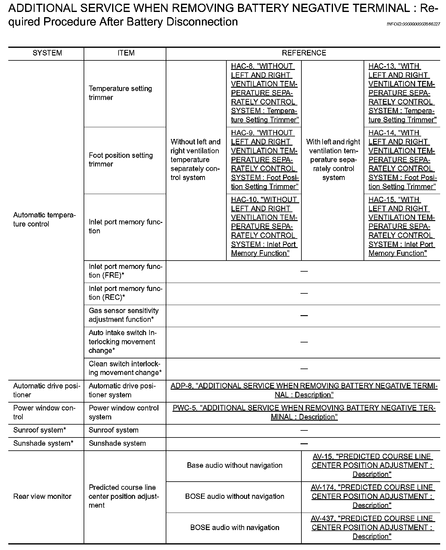 NEGATIVE TERMINAL : Required Procedure After Battery Disconnection