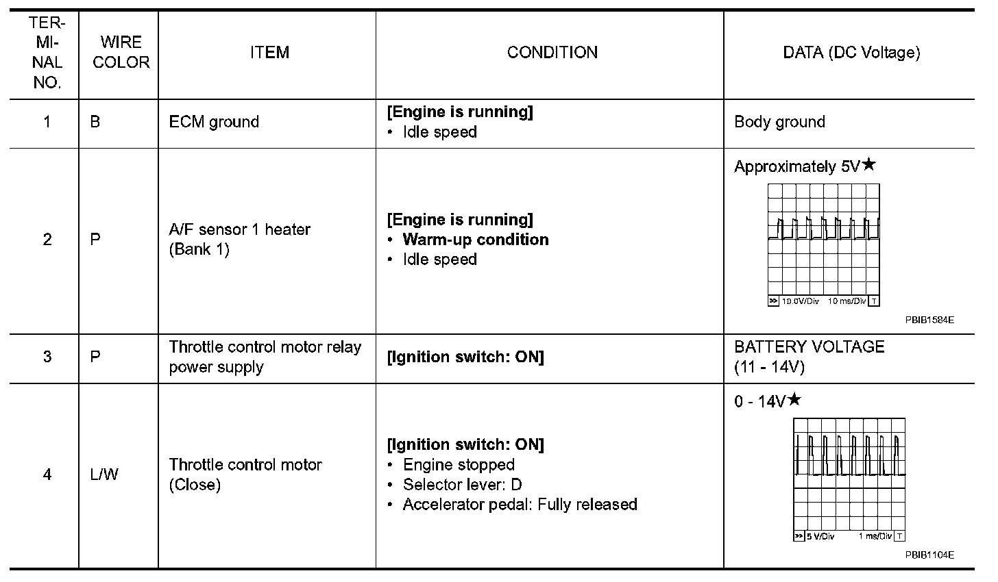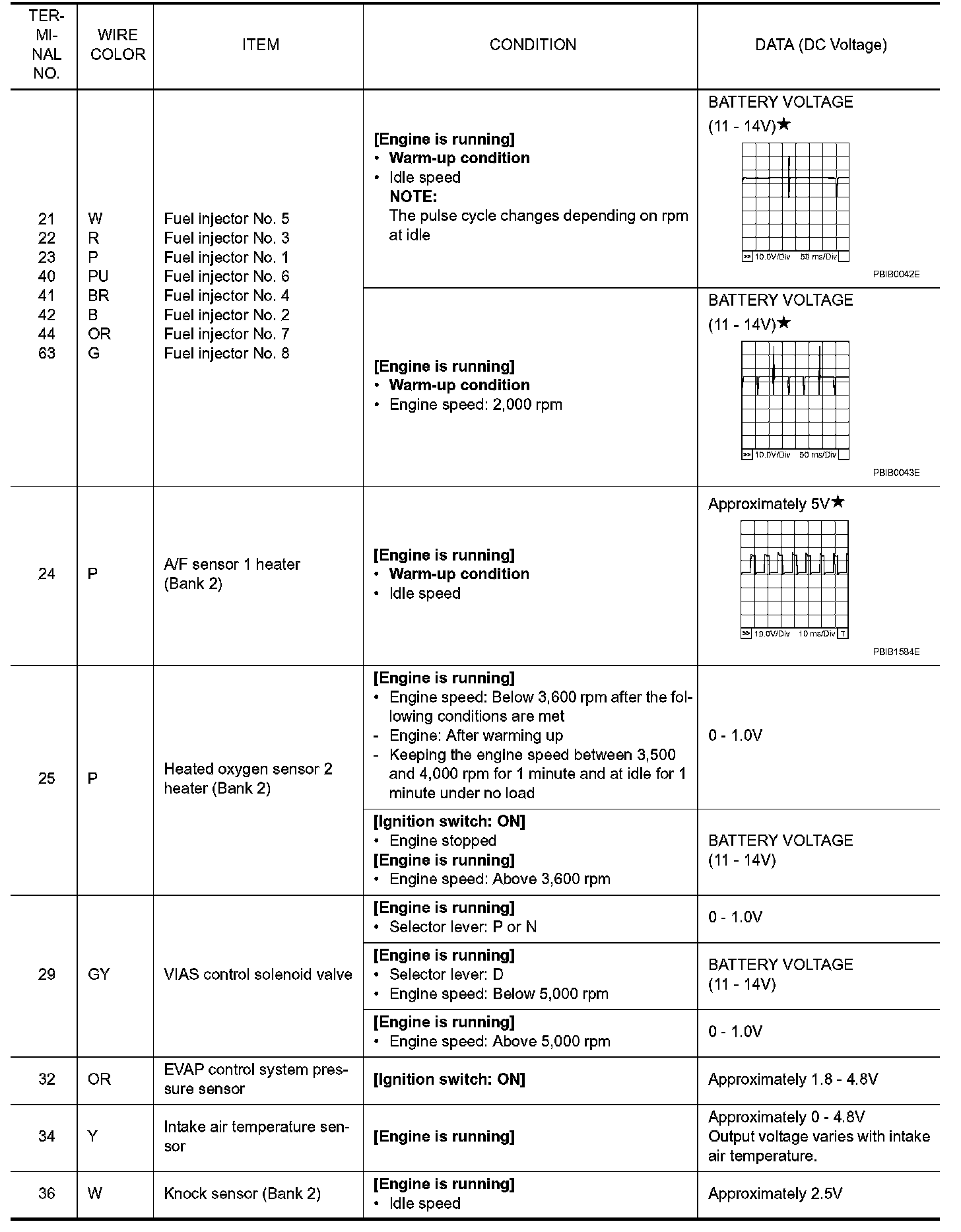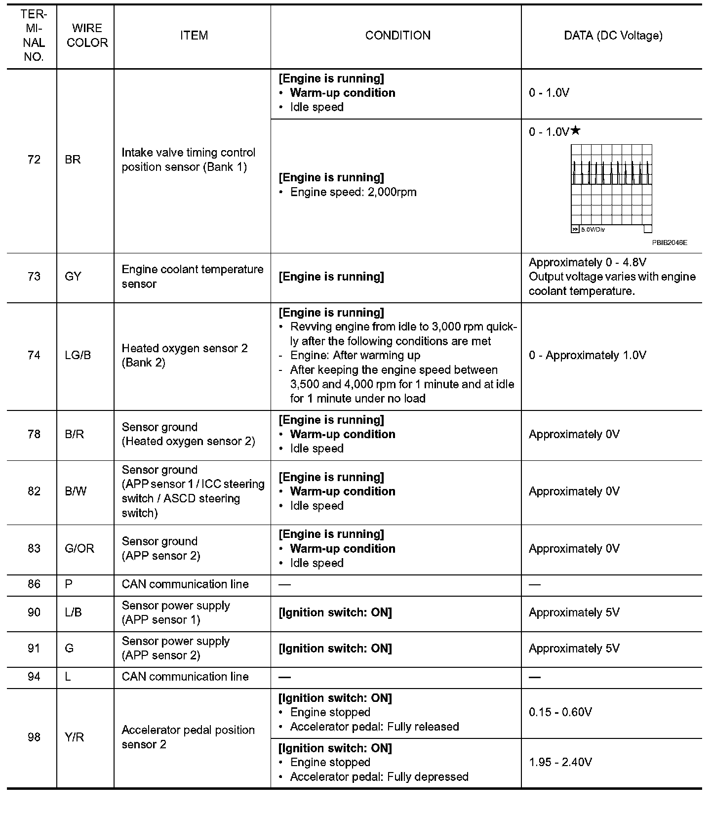 Specification data are reference values and are measured between each terminal and ground. Pulse signal is measured by CONSULT-III.