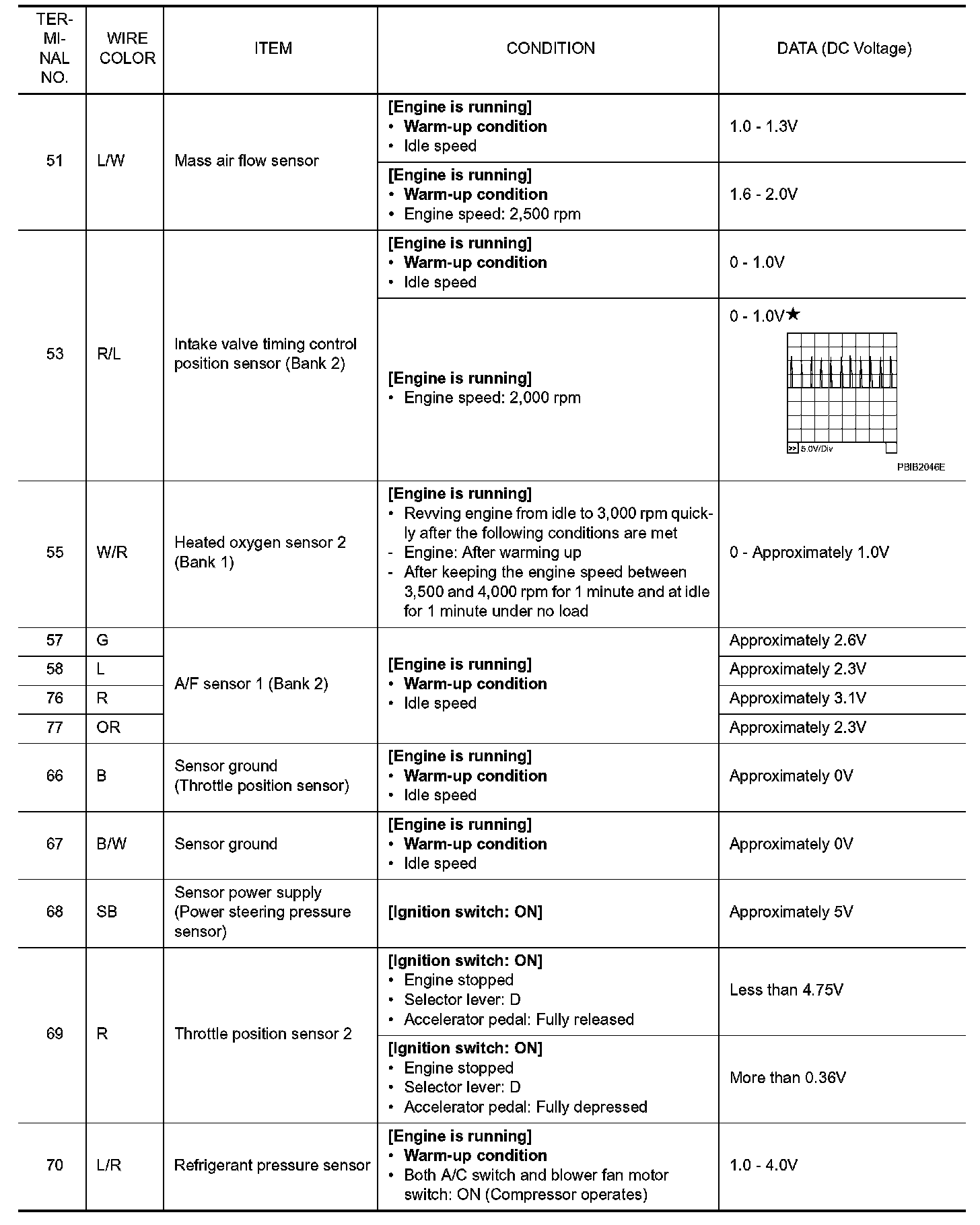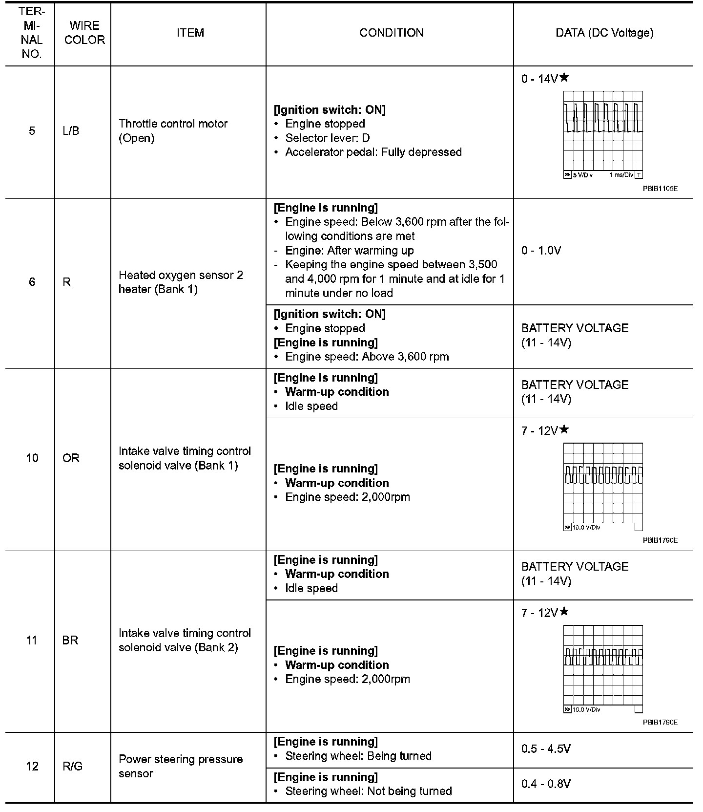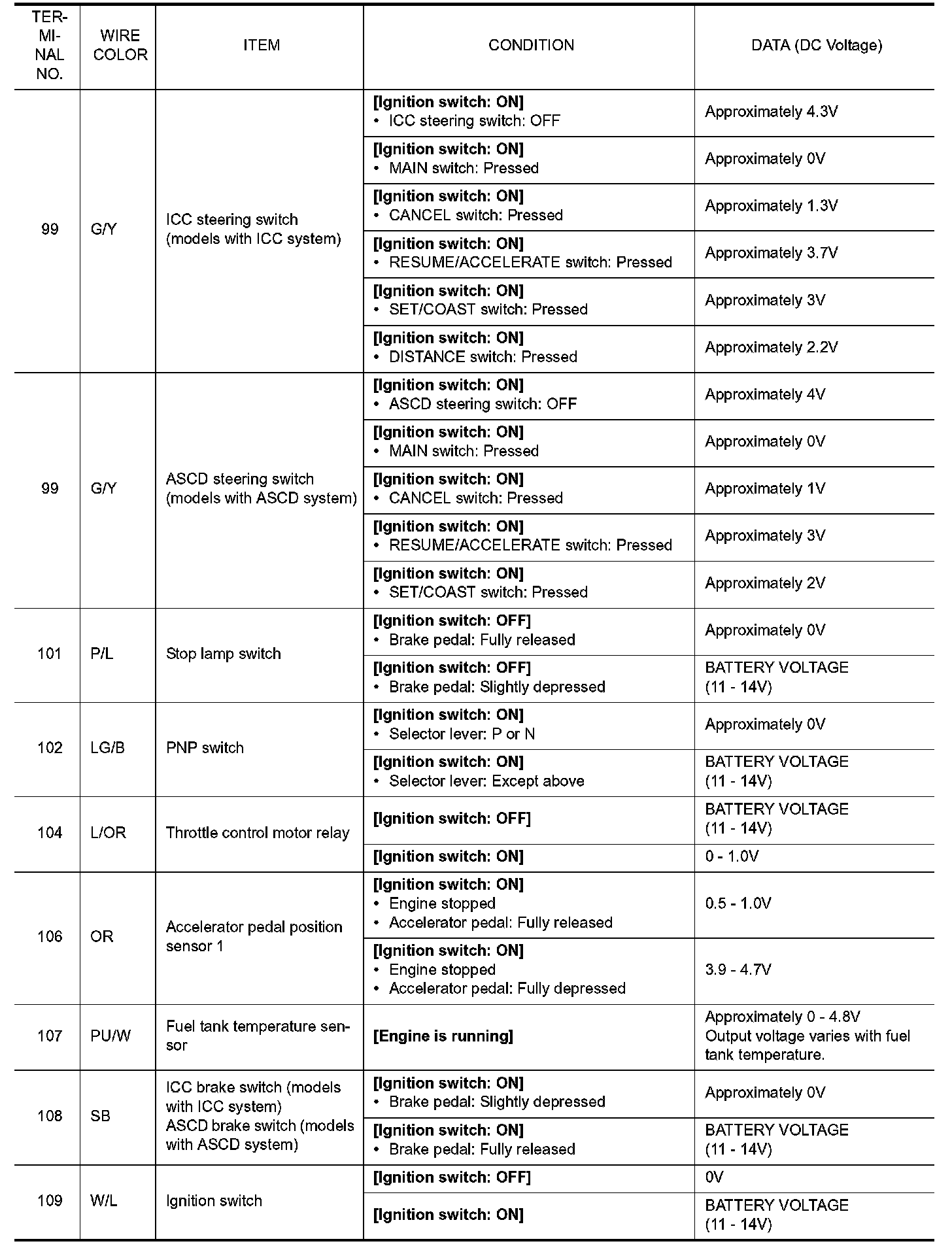 Specification data are reference values and are measured between each terminal and ground. Pulse signal is measured by CONSULT-III.