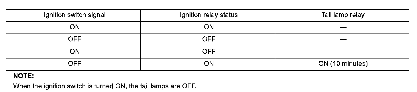 - When a state of ignition relay having built-in does not agree with a state of ignition switch signal input by a CAN communication from BCM, IPDM E/R lets tail lamp relay operate.