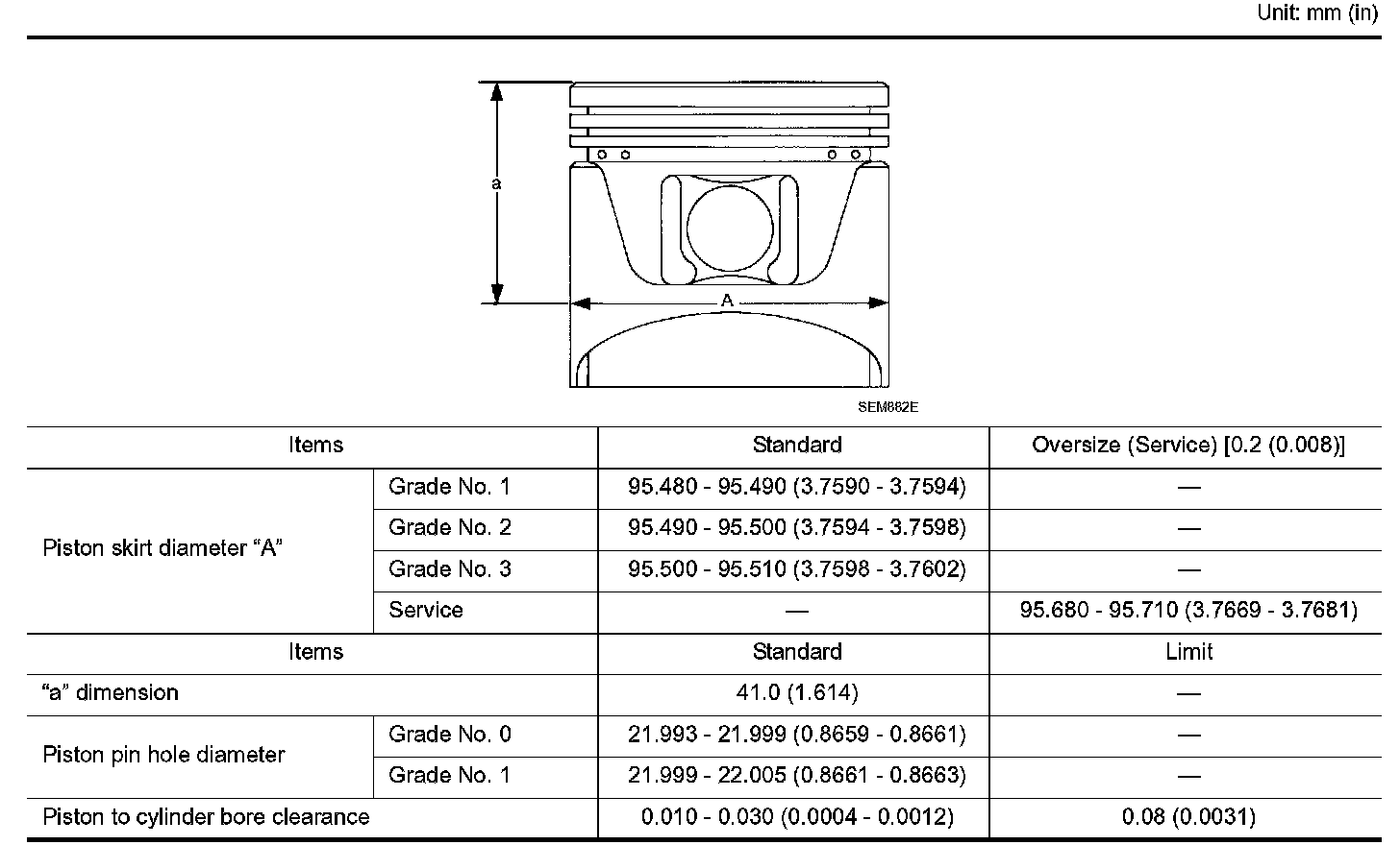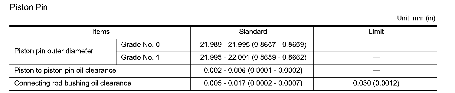 Piston, Piston Ring And Piston Pin (includes piston to cylinder bore clearance)