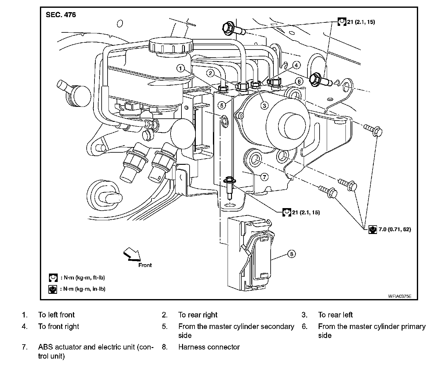 4. Disconnect the actuator harness from the ABS actuator and electric unit (control unit).