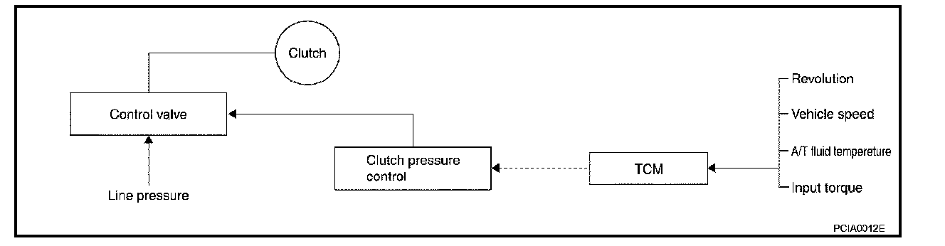 Shift ControlThe clutch pressure control solenoid is controlled by the signals from the switches and sensors. Thus, the clutch pressure is adjusted to be appropriate to the engine load state and vehicle driving state. It becomes possible to finely control the clutch hydraulic pressure with high precision and a smoother shift change characteristic is attained.