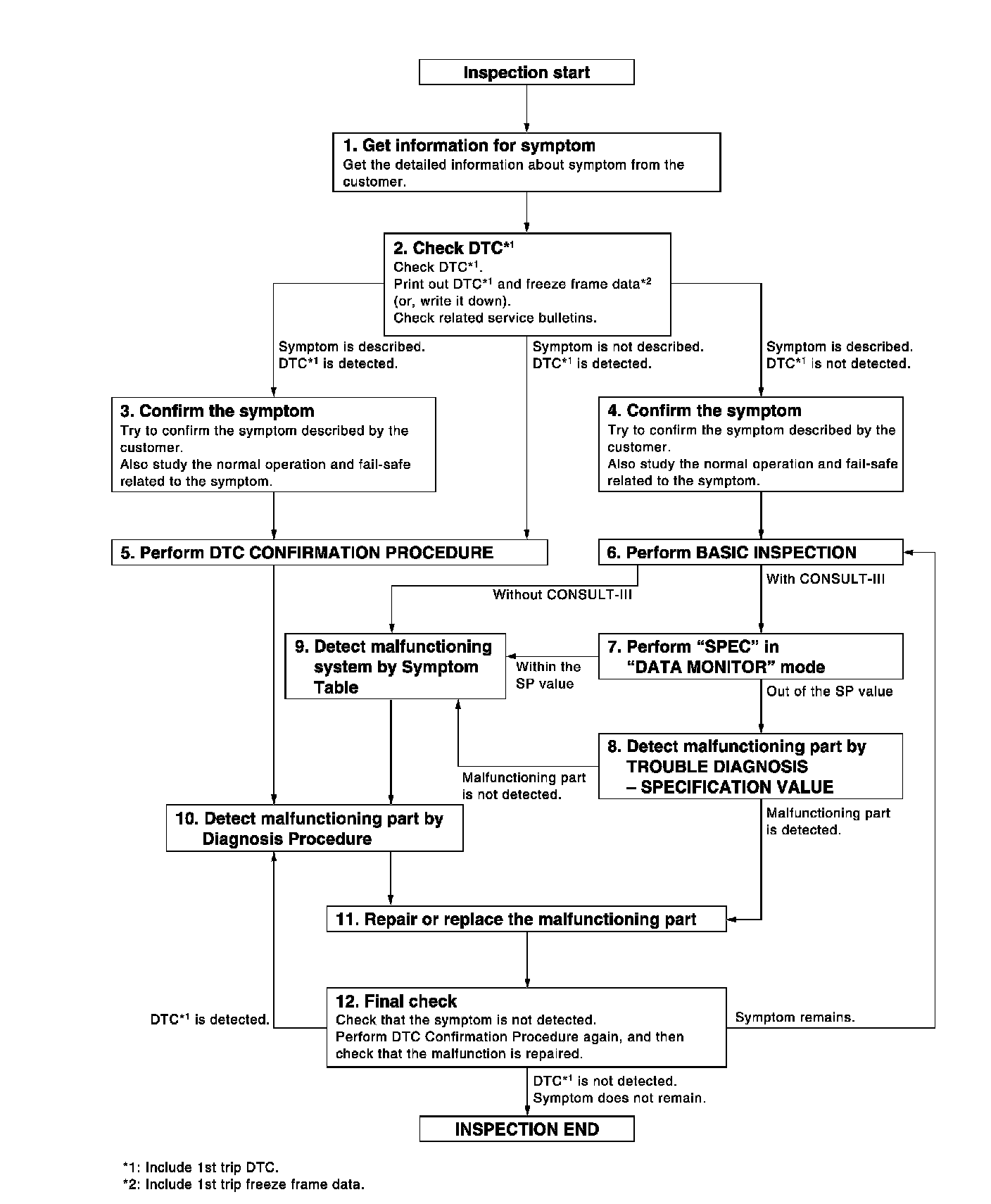- Study the relationship between the cause detected by DTC and the symptom described by the customer.