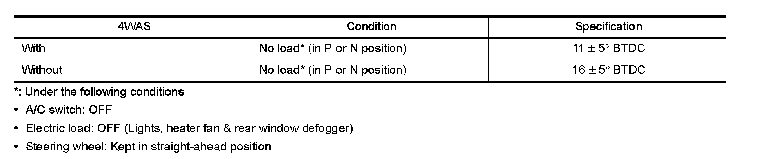 Ignition Timing: Specifications