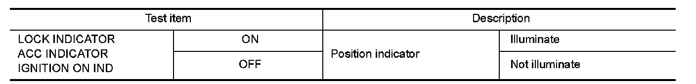 Check push-button ignition switch ("LOCK INDICATOR", "ACC INDICATOR" and "IGNITION ON IND") in