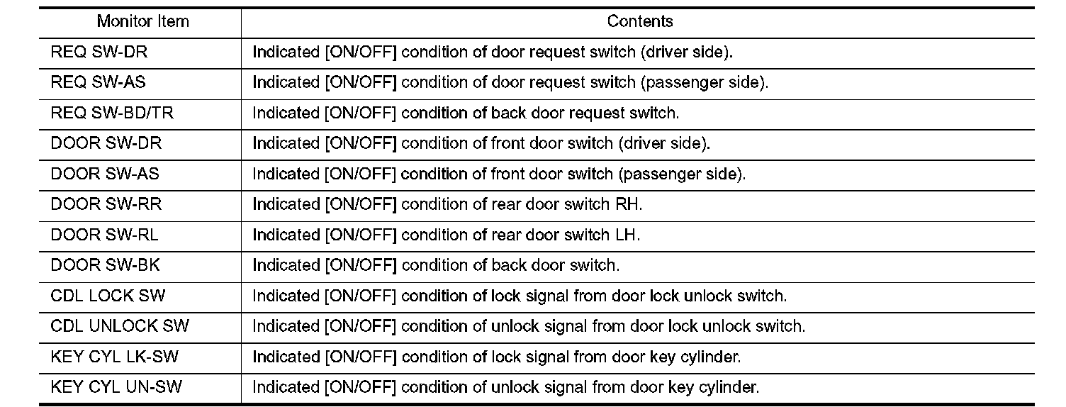 CONSULT-III performs the following functions via CAN communication with BCM.