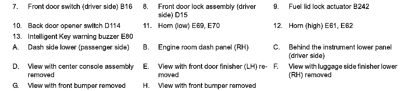 BACK DOOR OPEN FUNCTION : Component Parts Location