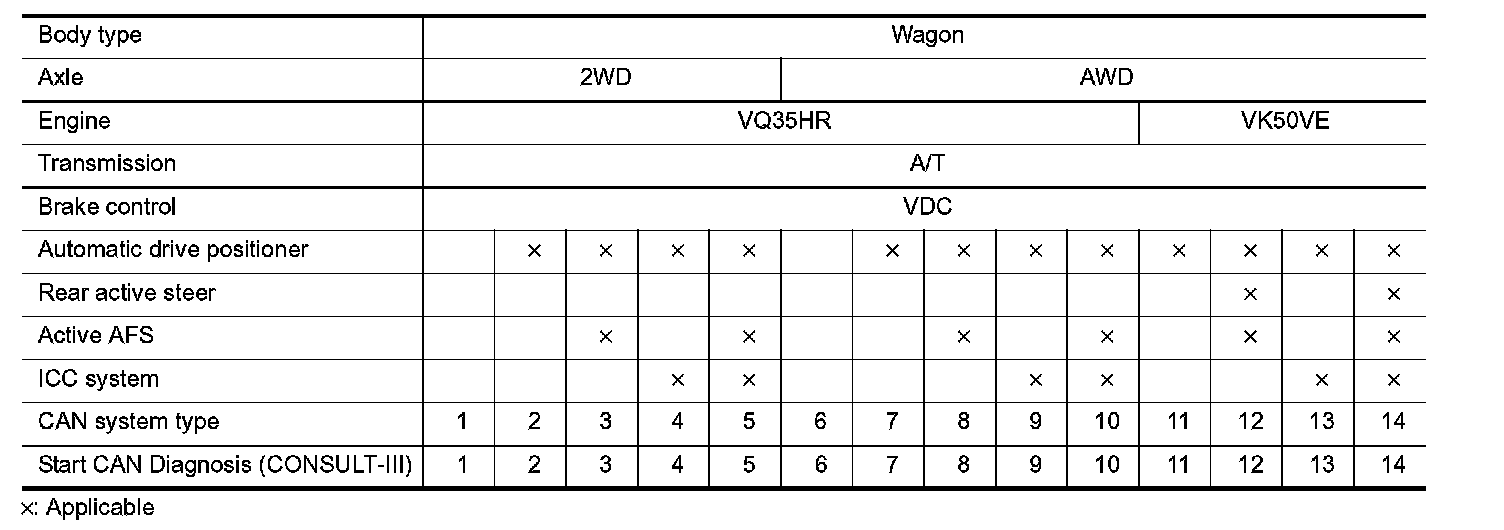 Refer to Trouble Diagnosis Procedure for how to use CAN system specification chart.