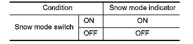 2. Check the snow mode indicator in the snow mode switch under the following condition.