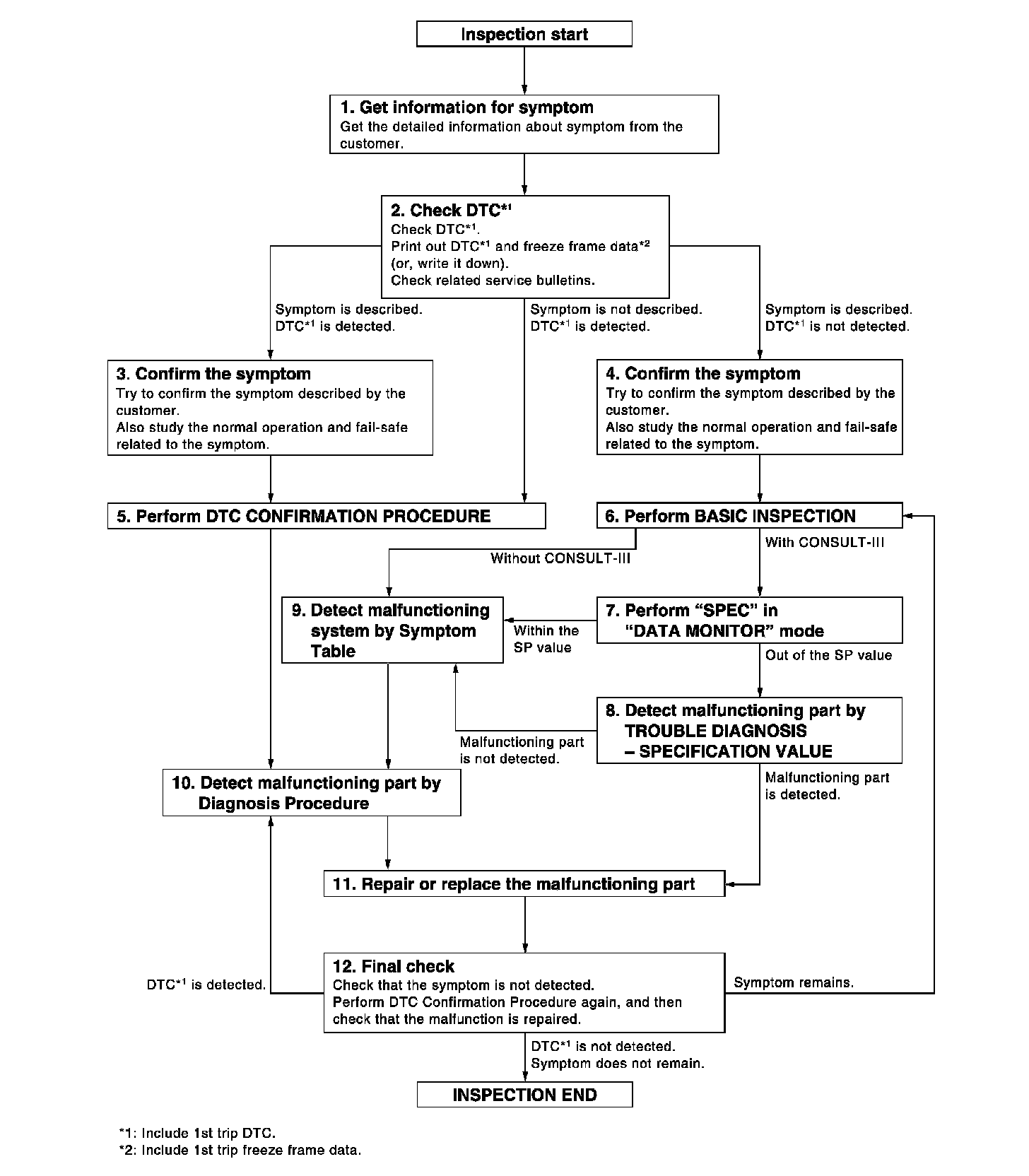 - Study the relationship between the cause detected by DTC and the symptom described by the customer.