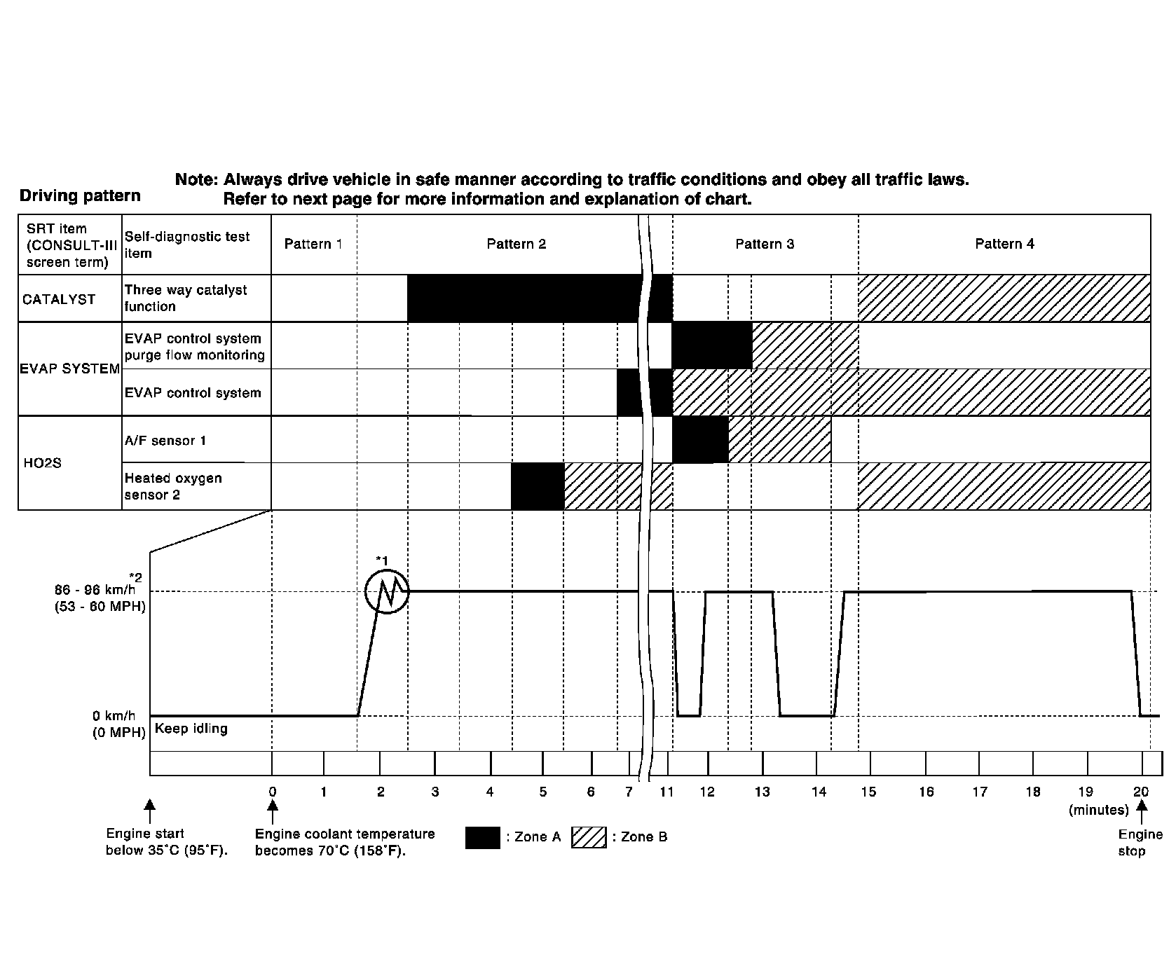 To set all SRT codes, self-diagnosis for the items indicated above must be performed one or more times. Each diagnosis may require a long period of actual driving under various conditions.