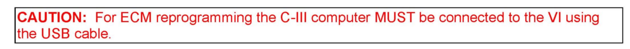 1. Use the USB cable to connect the Vehicle Interface (VI) to the C-III computer and then connect the VI to the vehicle.