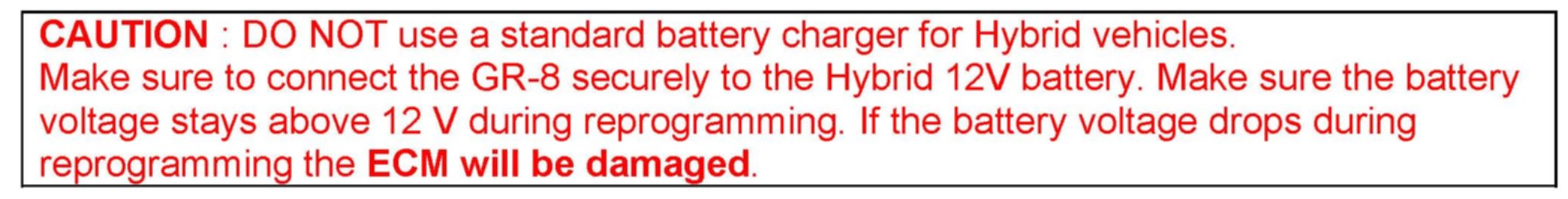 ^ If needed, refer to Hybrid Service TSBs for connecting the GR-8 to the Hybrid 12V battery.