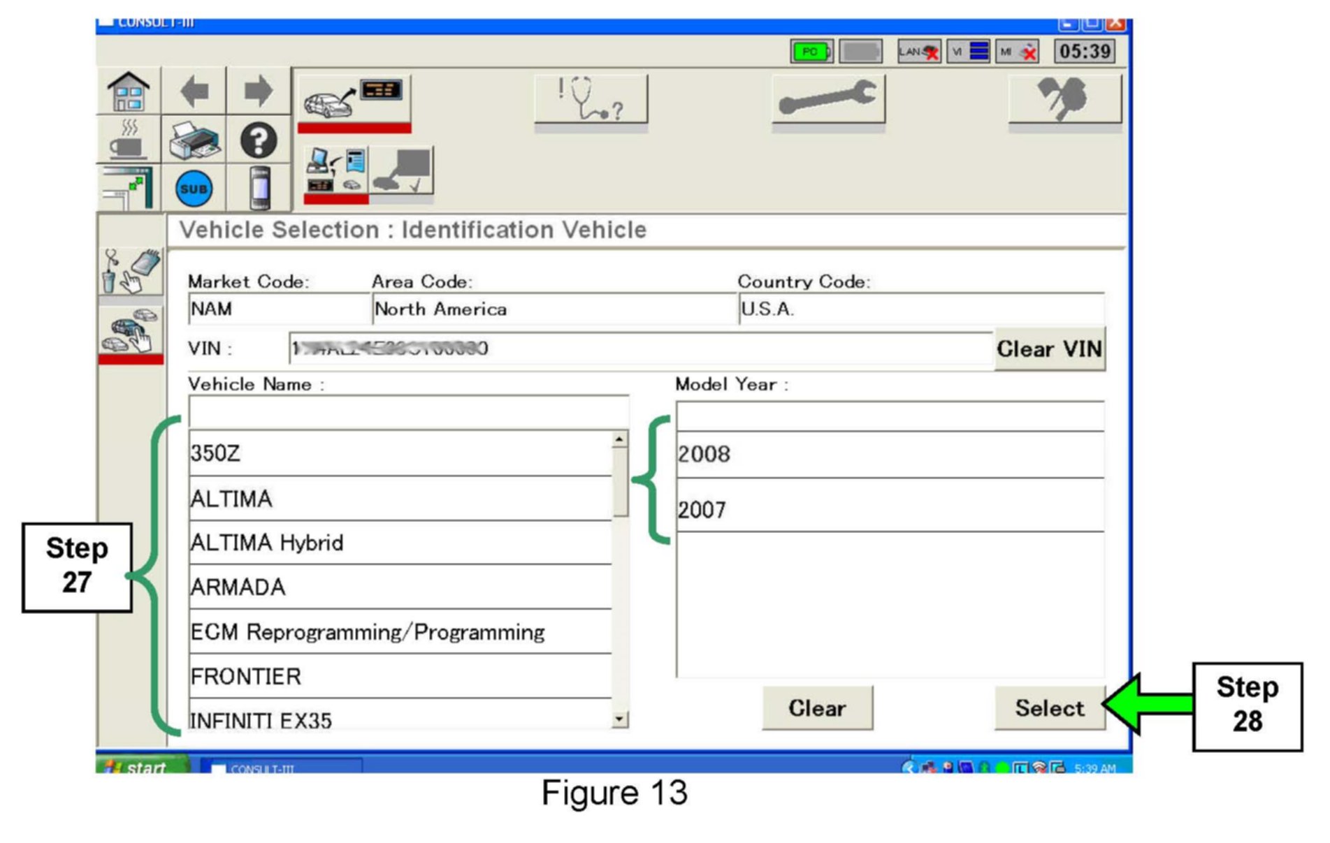 27. Select the correct vehicle and model year from the list (see Figure 13 example).
