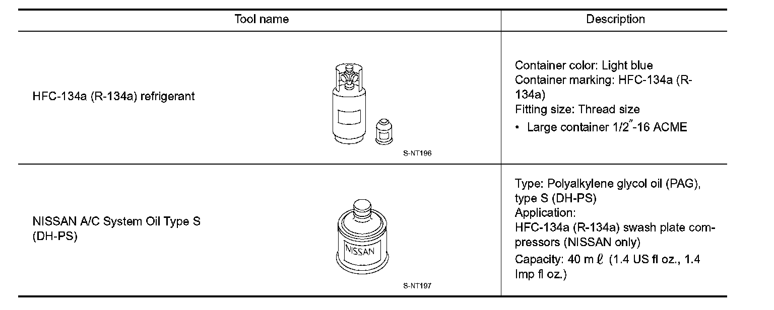 - Never mix HFC-134a (R-134a) refrigerant and/or its specified lubricant with CFC-12 (R-12) refrigerant and/ or its lubricant.