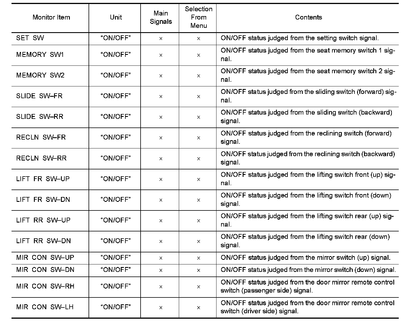 DIAGNOSIS SYSTEM (DRIVER SEAT C/U)