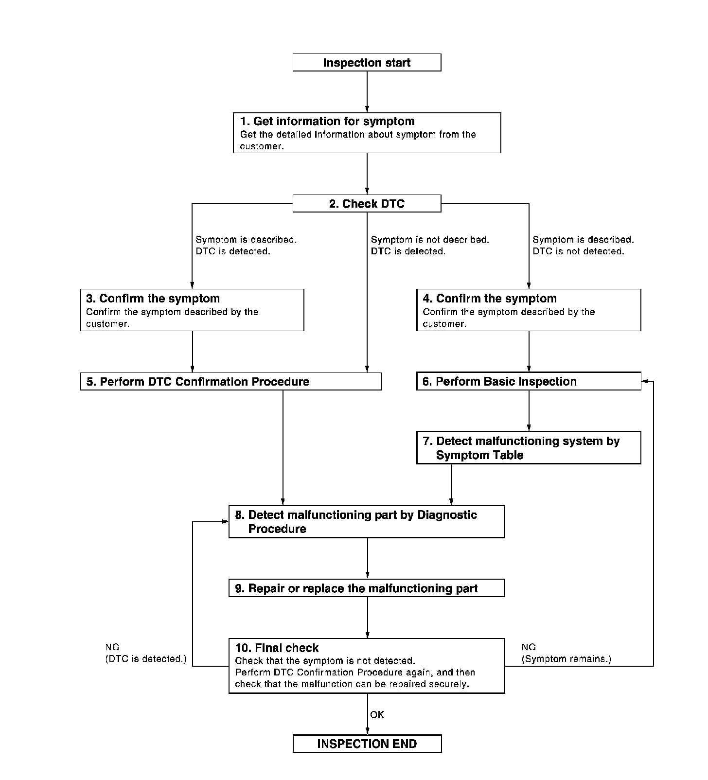 When symptom was described from the customer, refer to confirmed symptom in step 3 or 4 and check that the symptom is not detected.