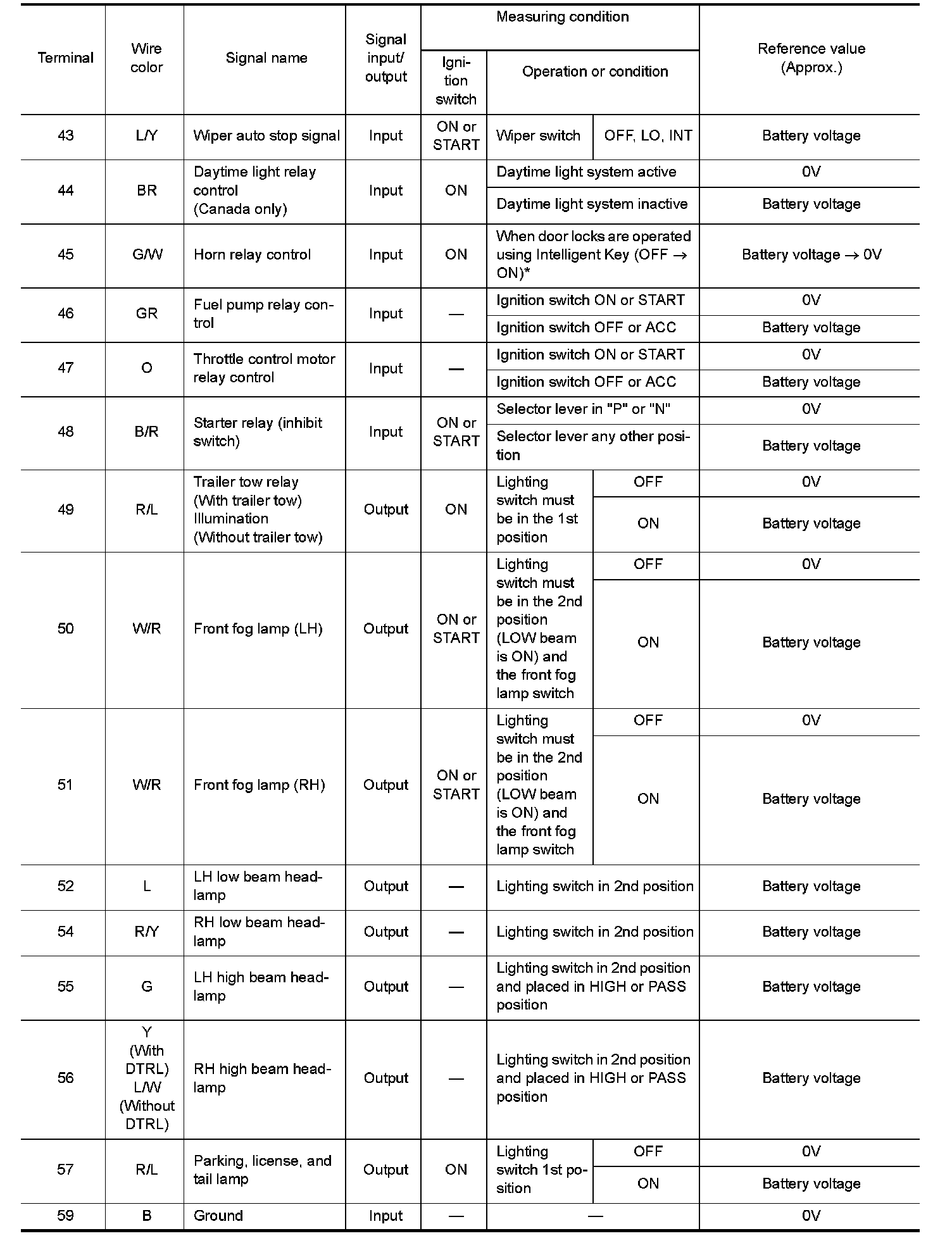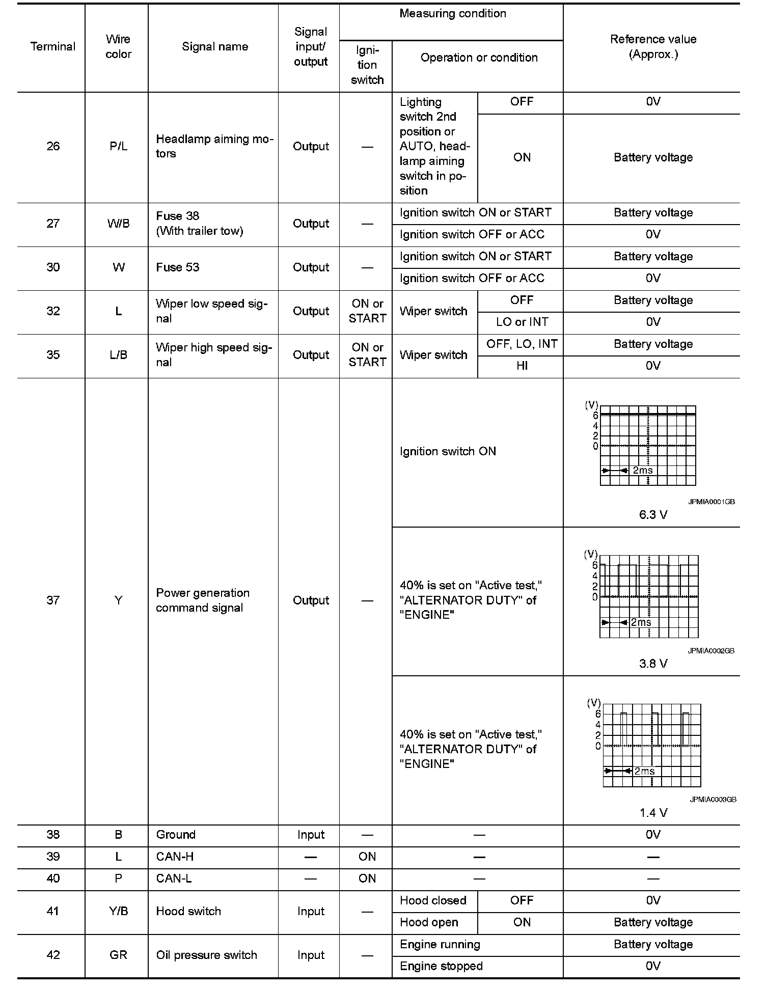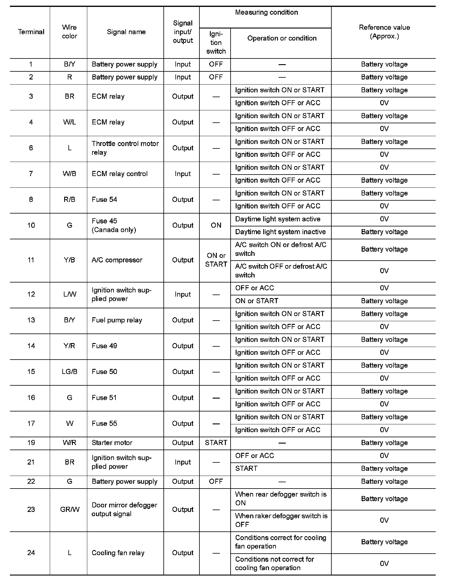 Pinout Values and Diagnostic Parameters