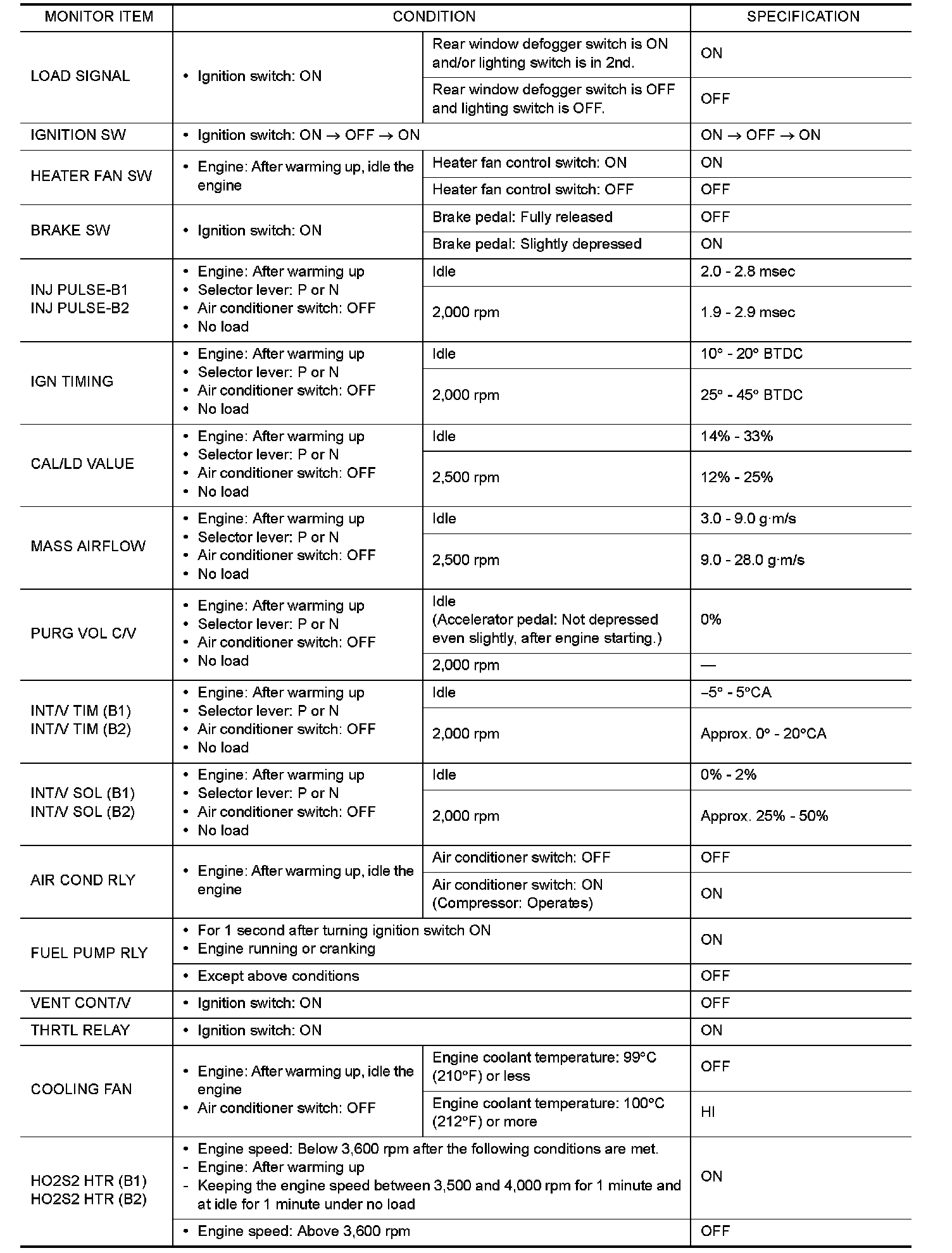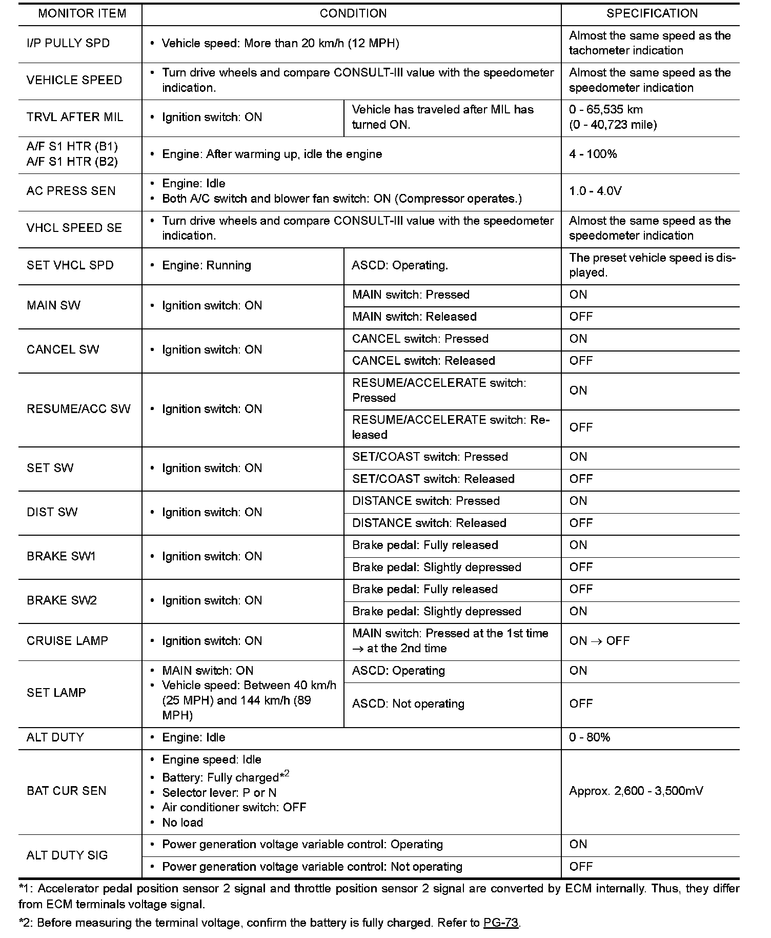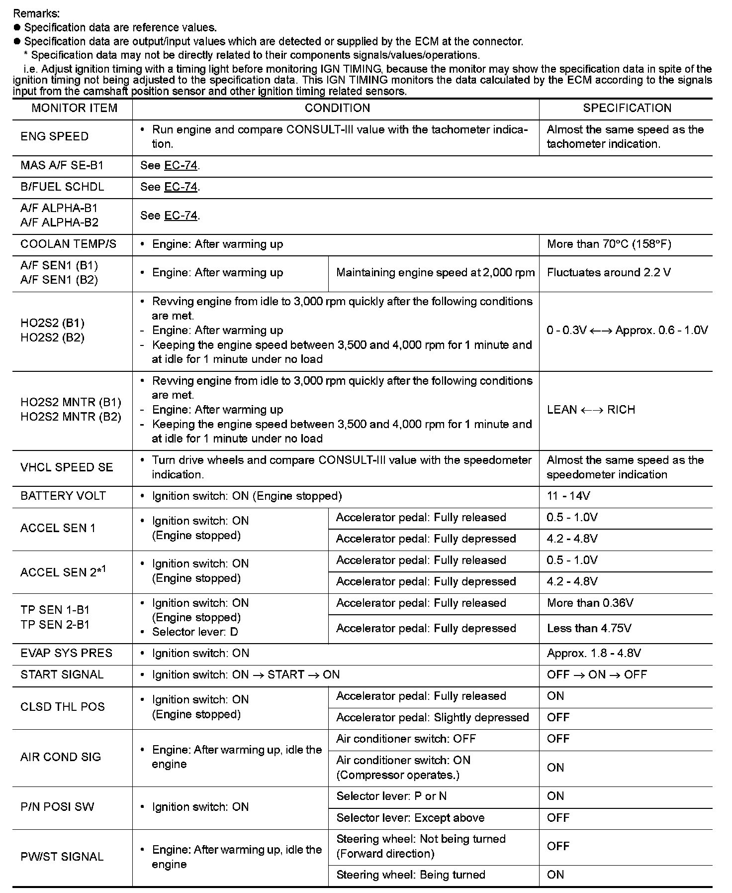 CONSULT-III Reference Value in Data Monitor Mode