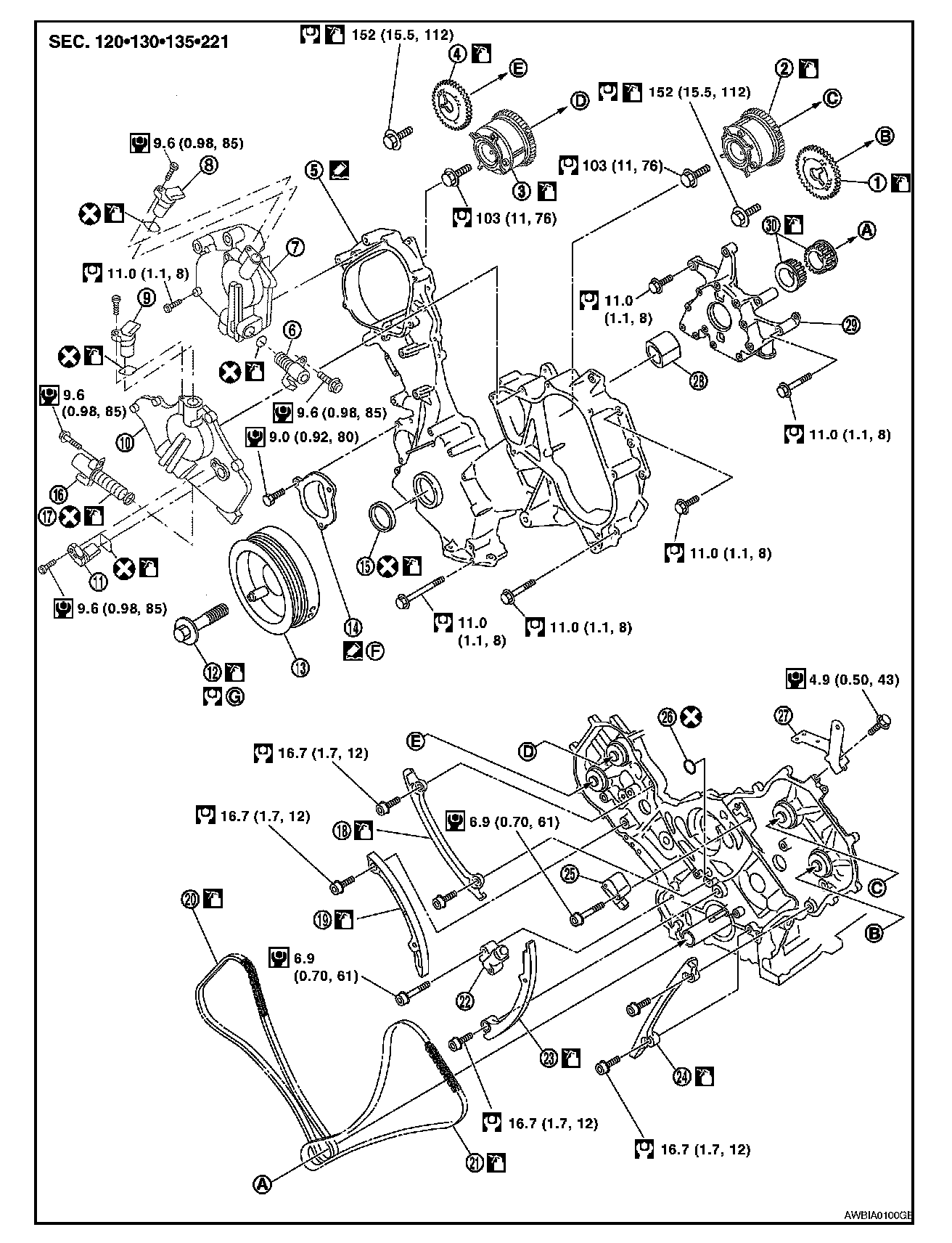 Chain Tensioner Bolts 6.9 Nm (0.70 kg-m, 61 in-lb)