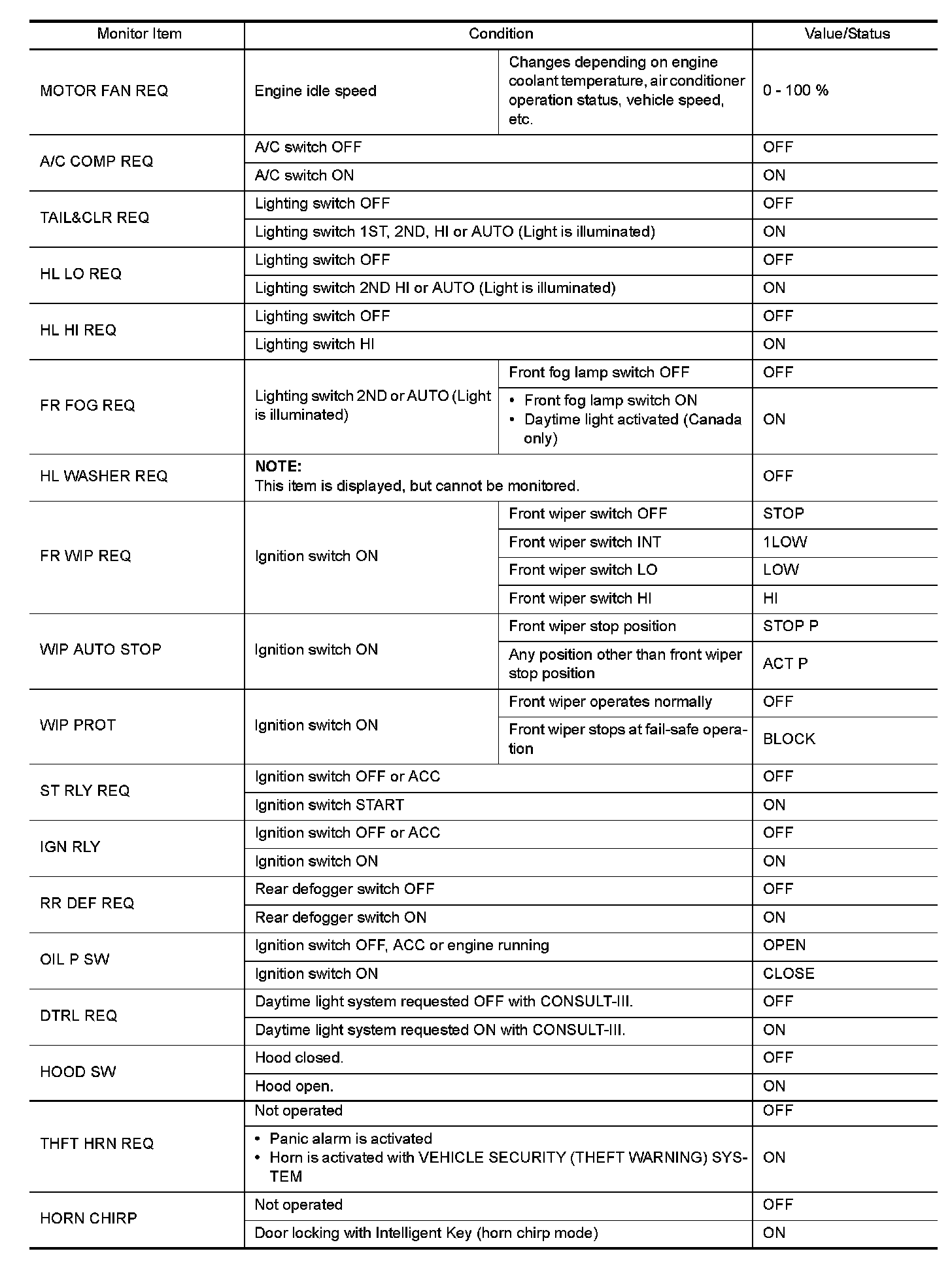 Pinout Values and Diagnostic Parameters