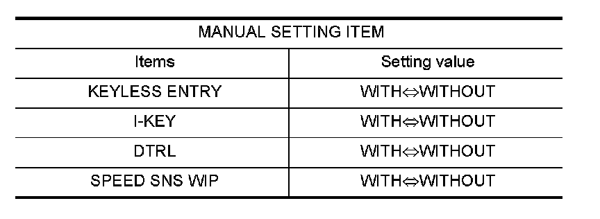 Depending on CONSULT-III software version being used, some or all of the write configuration items shown in the following configuration lists may be displayed. If an item does not display on the CONSULT-III "WRITE