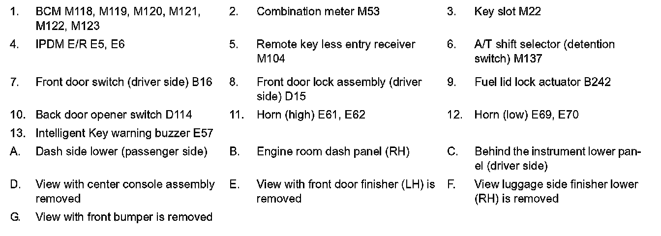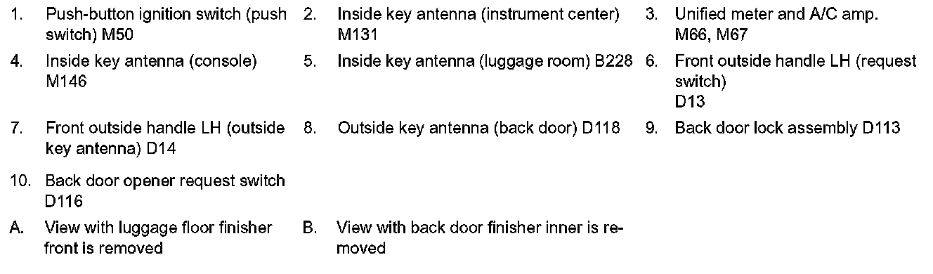 BACK DOOR OPEN FUNCTION : Component Parts Location
